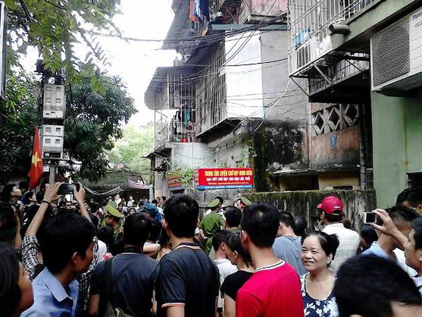 Lực lượng công an đã áp sát khu nhà E6 thuyết phục đối tượng đầu hàng