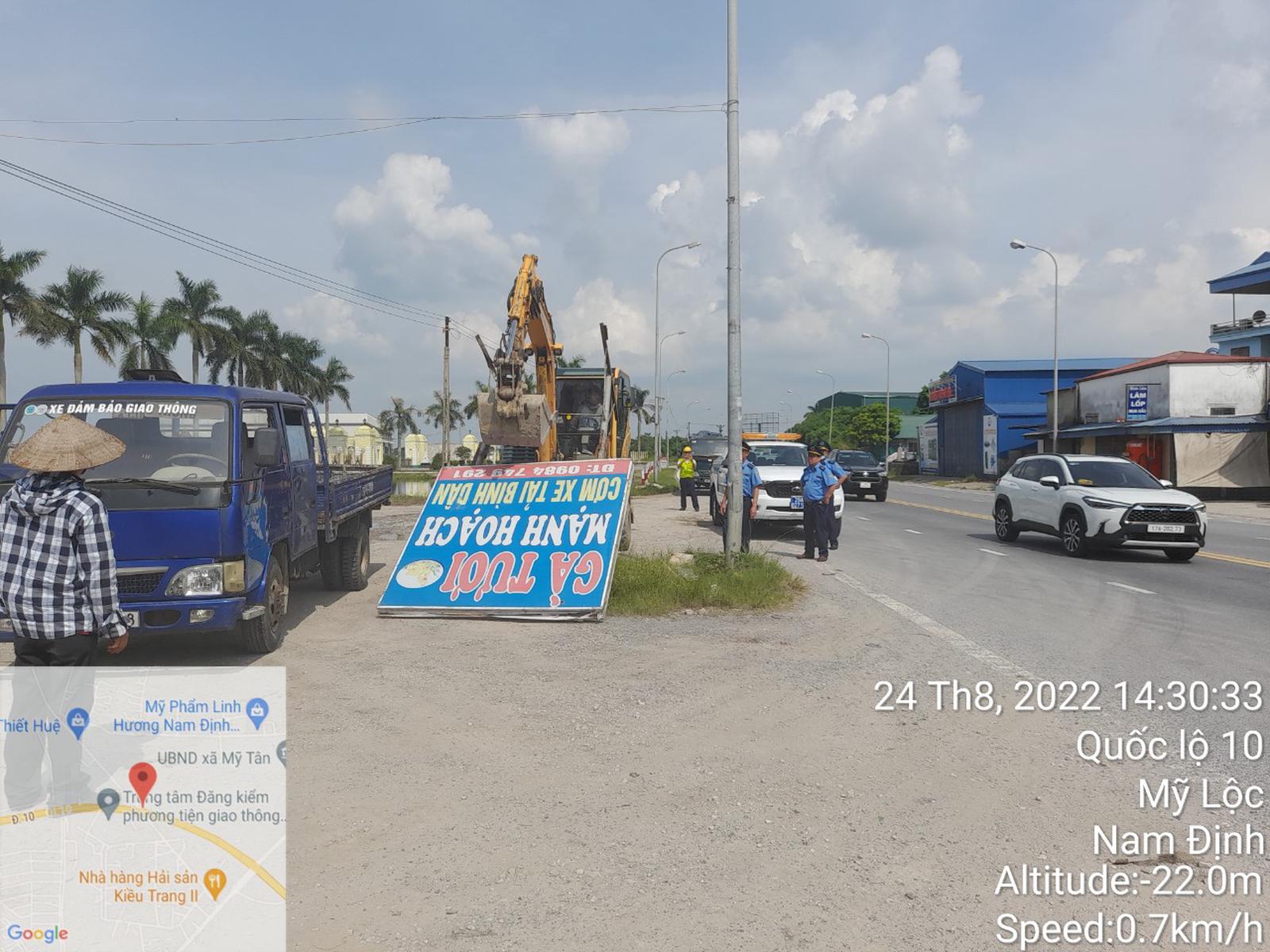 (Thanh tra) - Từ ngày 23-25/8, Chi cục Quản lý đường bộ I.7 phối hợp với UBND huyện Mỹ Lộc thực hiện giải toả hành lang an toàn giao thông đường bộ trên địa bàn năm 2022.