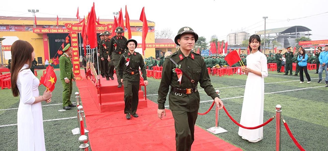 Ngày 13/2, các tân binh ở tỉnh Nam Định lên đường nhận nghiệm vụ. Ảnh: BNĐ