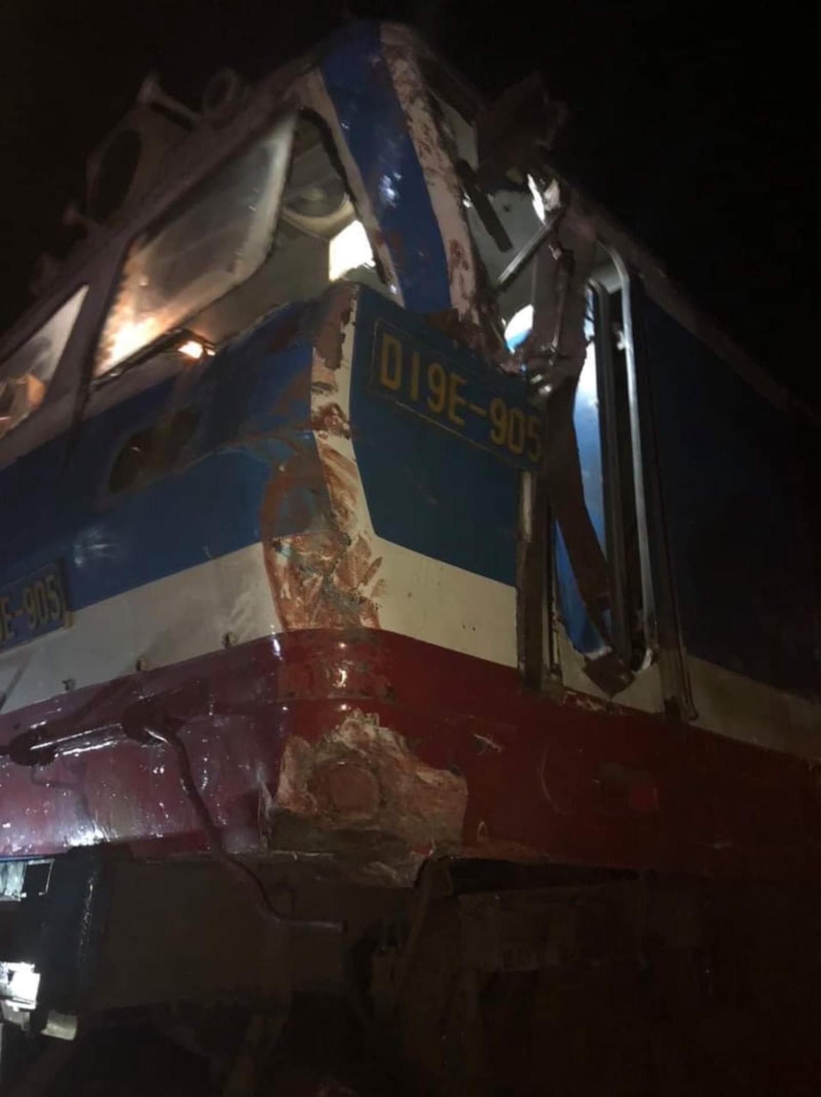 Đúng thời điểm này, tàu chở hàng có đầu máy mang số hiệu D19E-905 theo hướng từ Ninh Bình đi Nam Định chạy ngang qua nên giữa hai phương tiện xảy ra vụ va chạm rất mạnh.