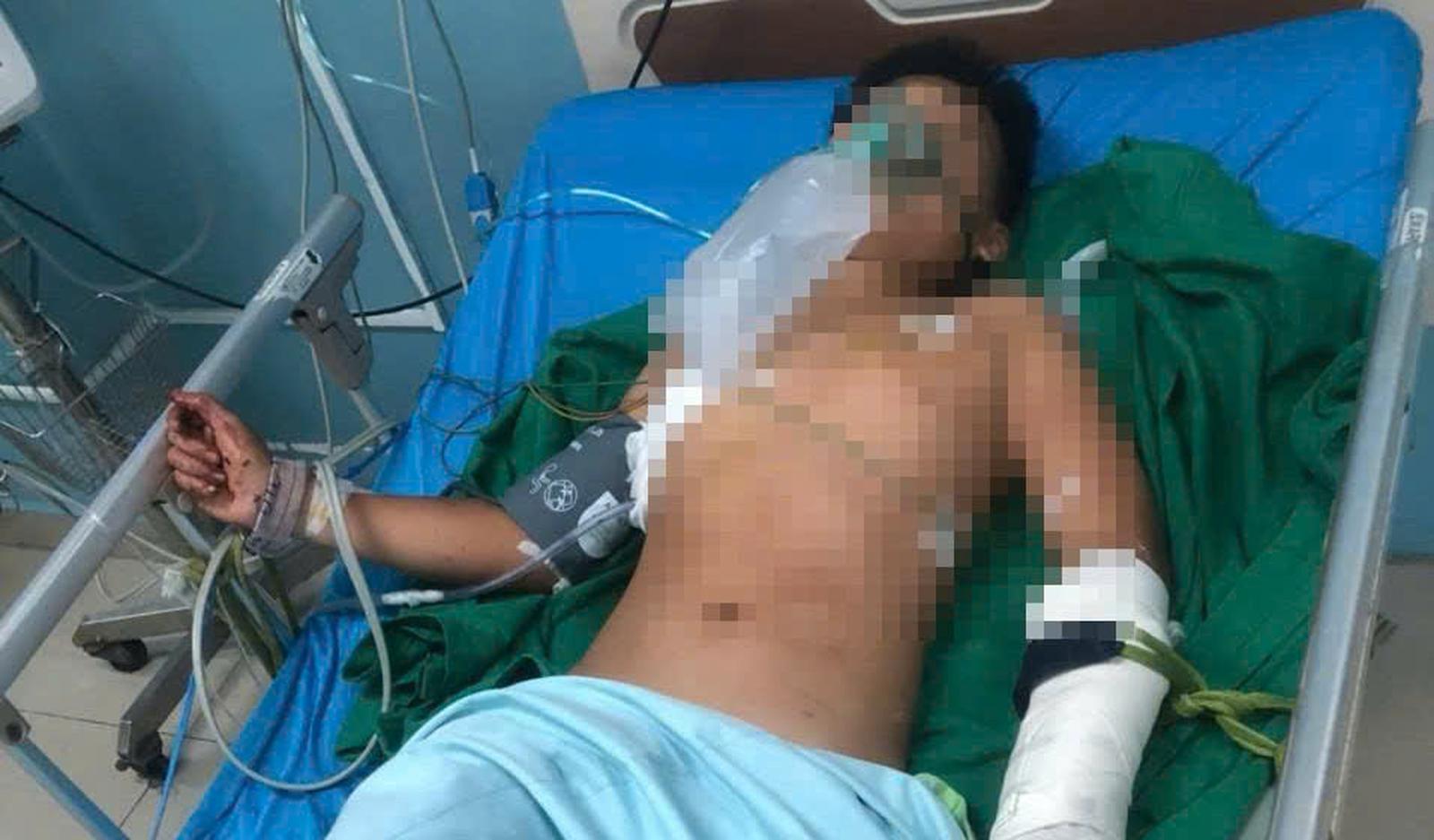 Bé trai 12 tuổi, nạn nhân sống sót duy nhất trong vụ thảm sát, đang được đội ngũ y bác sĩ tích cực cấp cứu và điều trị. Ảnh: NG