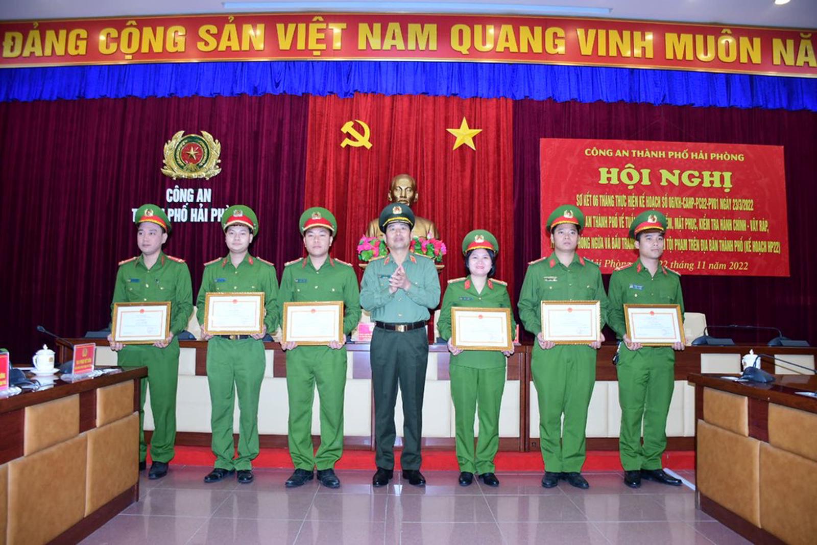 Nhân dịp này, Chủ tịch UBND TP tặng bằng khen cho 3 tập thể và 3 cá nhân có thành tích xuất sắc; Giám đốc Công an TP tặng giấy khen cho 12 cá nhân có thành tích xuất sắc trong thực hiện Kế hoạch HP22.