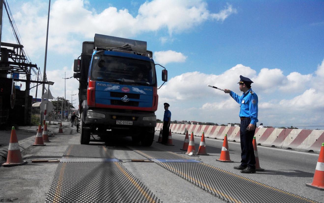 Lực lượng thanh tra GTVT kiểm tra xe quá khổ, quá tải. Ảnh: V.Duẩn