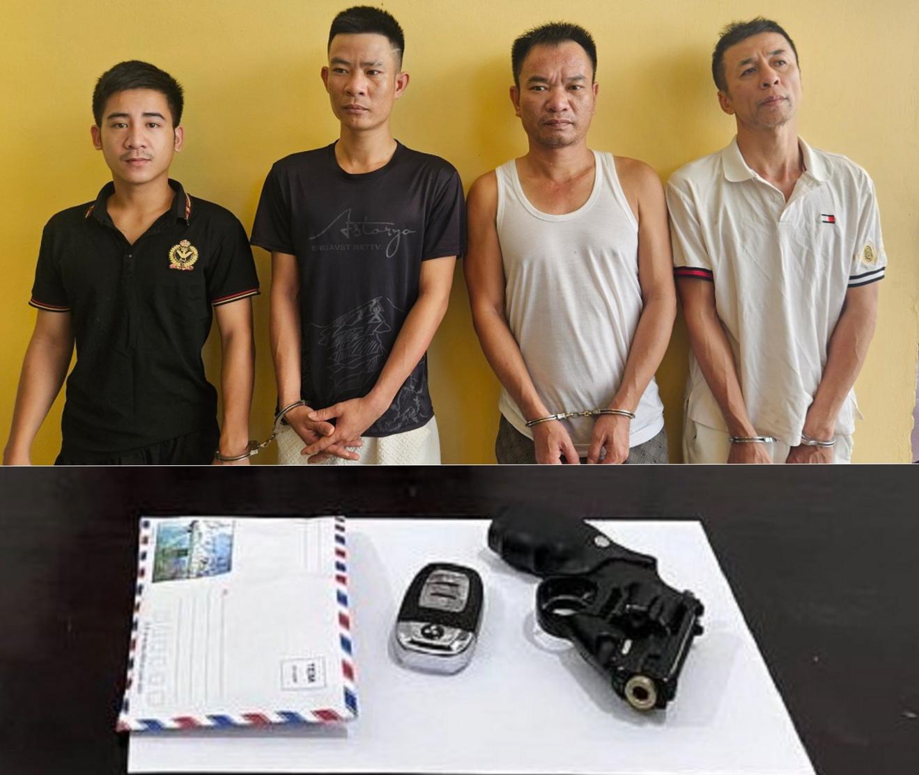 Công an huyện Anh Sơn bắt các đối tượng phạm tội ma túy tàng trữ vũ khí nóng. Ảnh: QT