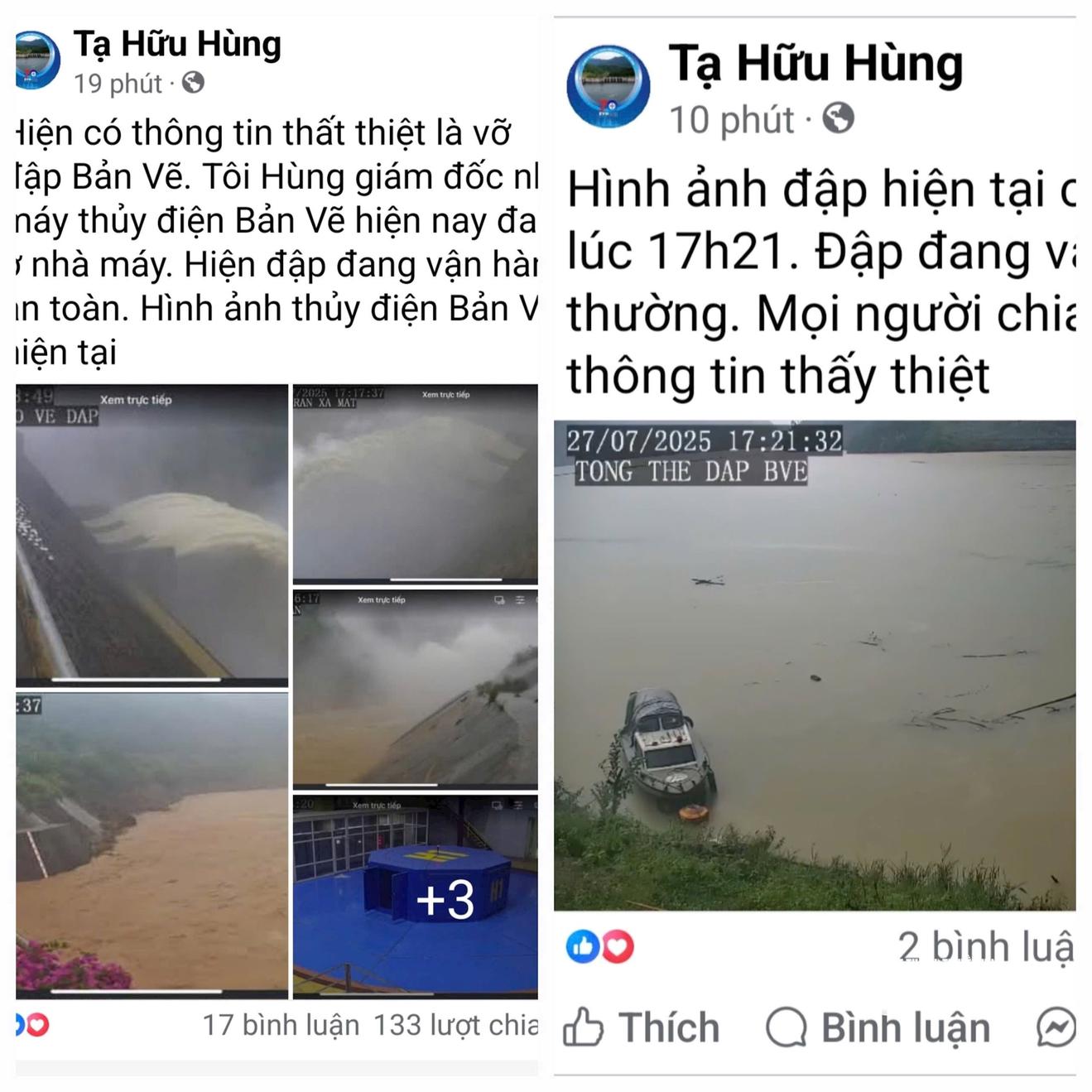Thông tin giả mạo này xuất hiện vào chiều 27/7, trên một số tài khoản mạng xã hội, sau đó được nhiều người chia sẻ gây xôn xao trong cộng đồng, đặc biệt là người dân tại khu vực hạ du sông Nậm Nơn. Ngay sau đó, ông Tạ Hữu Hùng - Giám đốc Công ty Thủy điện Bản Vẽ đã lên tiếng bác bỏ thông tin này, khẳng định đó là tin đồn không đúng sự thật.