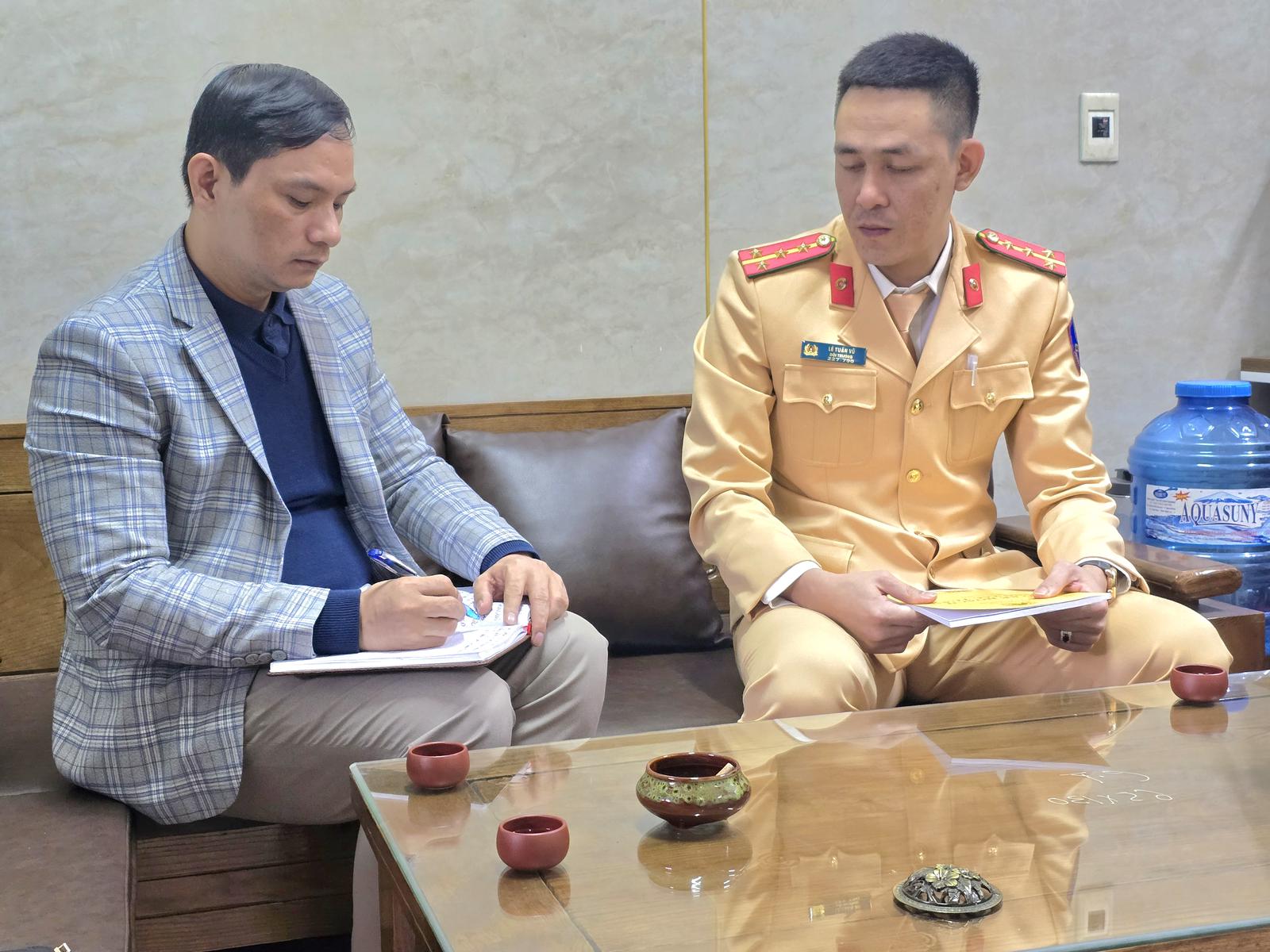 Đội trưởng Đội CSGT đường bộ số 1 trao đổi với phóng viên Báo Thanh tra. Ảnh: P.V