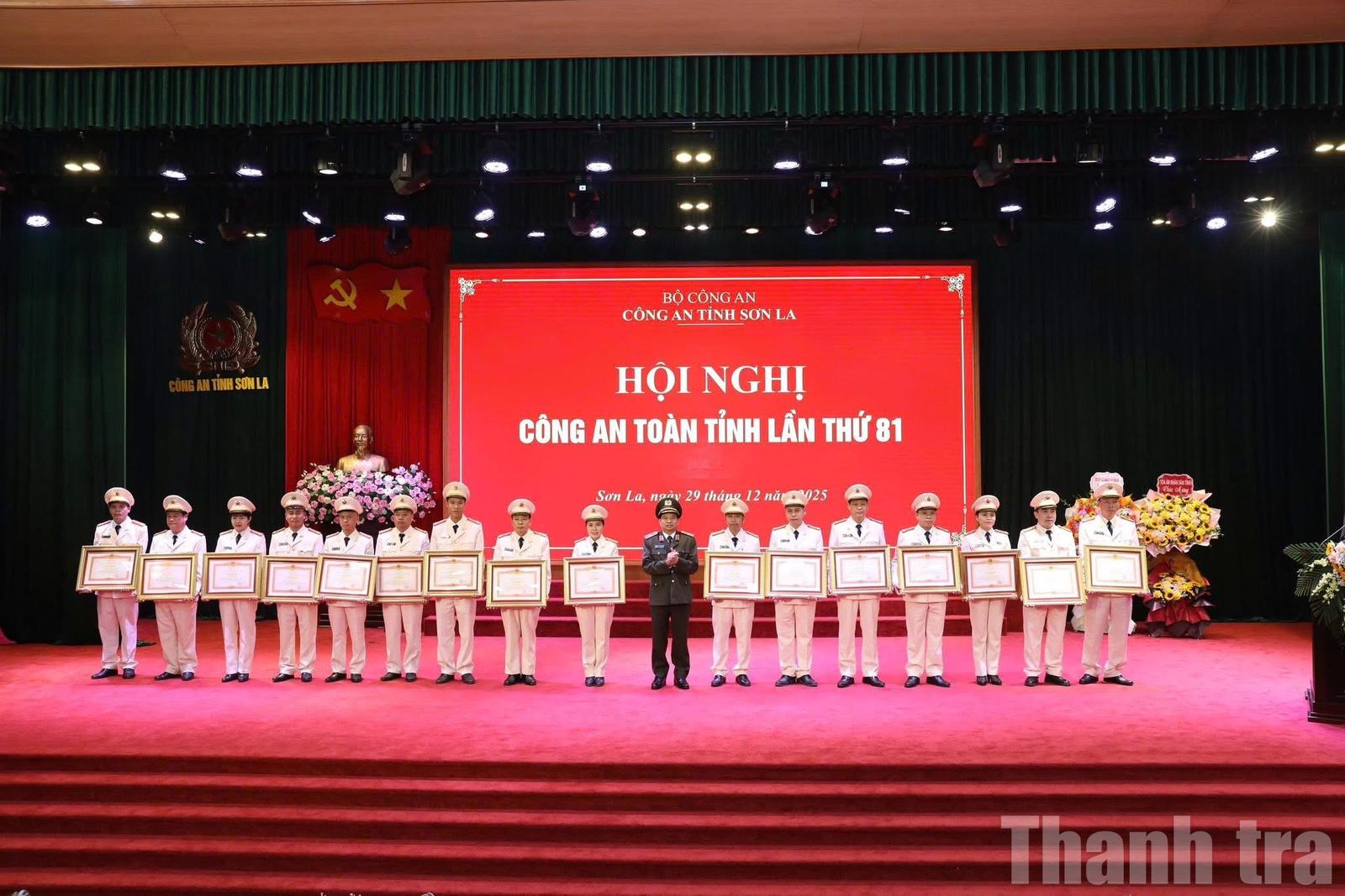 (Thanh tra) - Ngày 29/12, Công an tỉnh Sơn La tổ chức hội nghị công an toàn tỉnh lần thứ 81 và đánh giá kết quả công tác công an năm 2025, triển khai nhiệm vụ trọng tâm năm 2026 cũng như khen thưởng cho nhiều tập thể, cá nhân có thành tích xuất sắc.