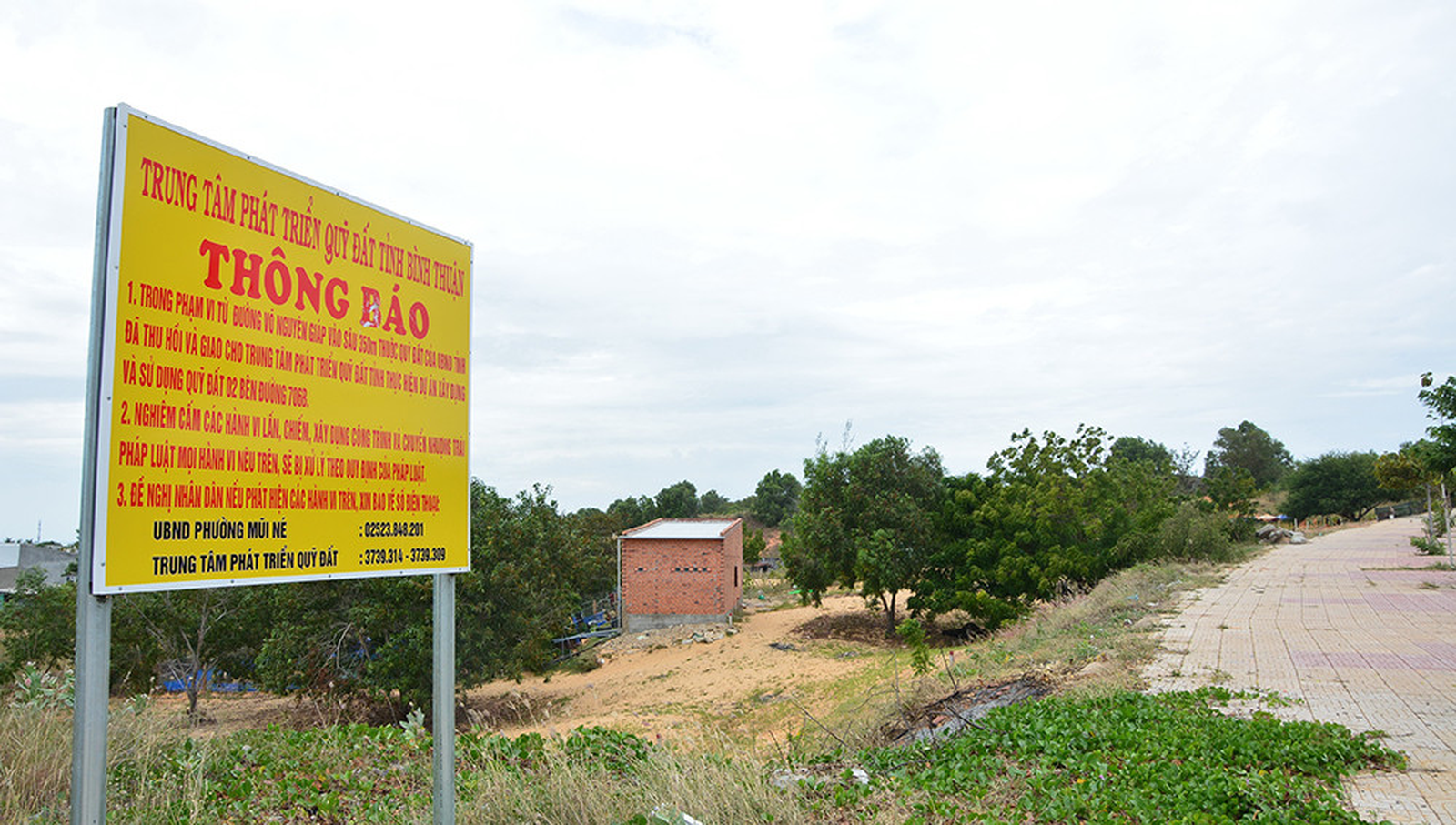 Tại nhiều nơi, Trung tâm Phát triển quỹ đất tỉnh Bình Thuận phải cắm các bảng thông báo như thế này. Ảnh: Đ.T