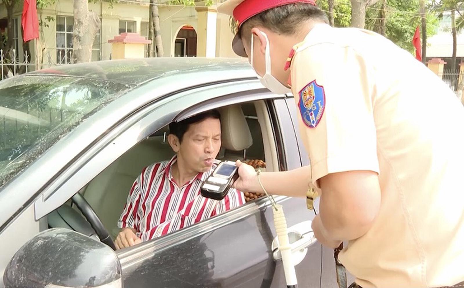 CSGT tỉnh Ninh Bình kiểm tra nồng độ cồn người điều khiển ô tô tham gia giao thông. Ảnh: Đinh Thanh Tùng