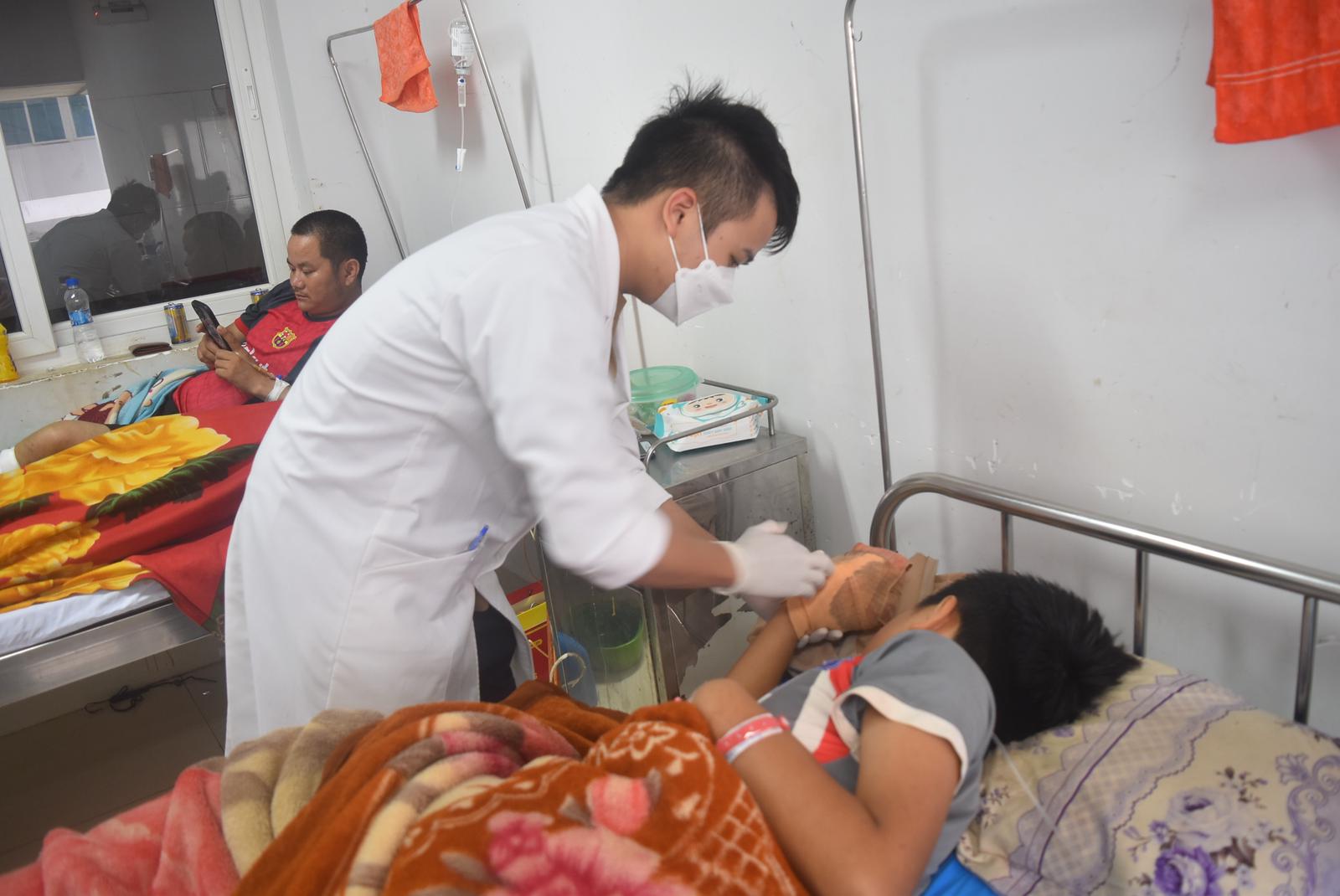 Bác sĩ đang thăm khám cho một học sinh bị pháo nổ gây đa chấn thương ở Đắk Lắk. Ảnh: ND