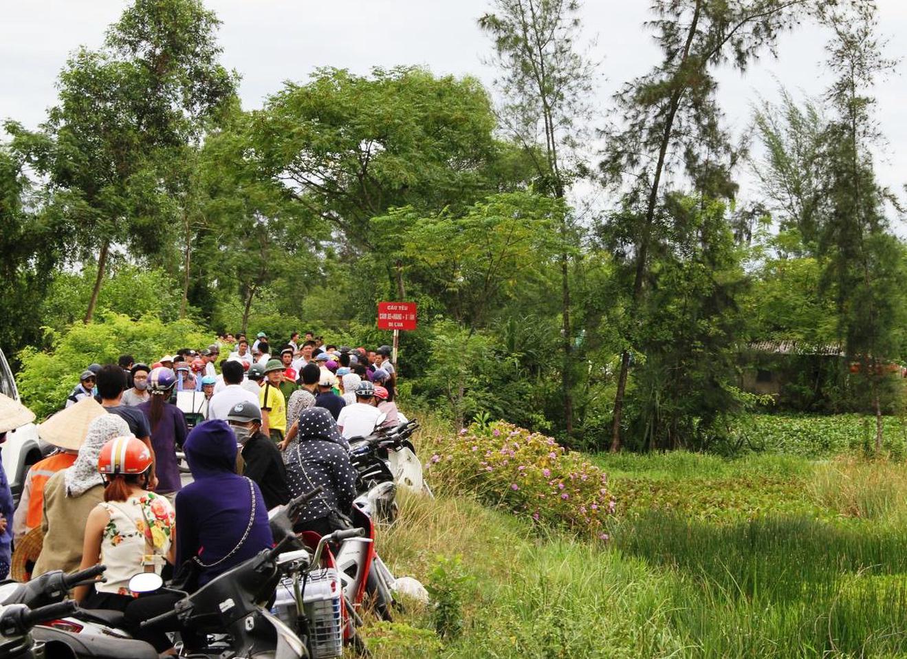 Rất đông người dân hiếu kỳ tụ tập quanh khu vực cầu Sú xem cơ quan chức năng vớt thi thể nạn nhân. Ảnh: Yến Yến