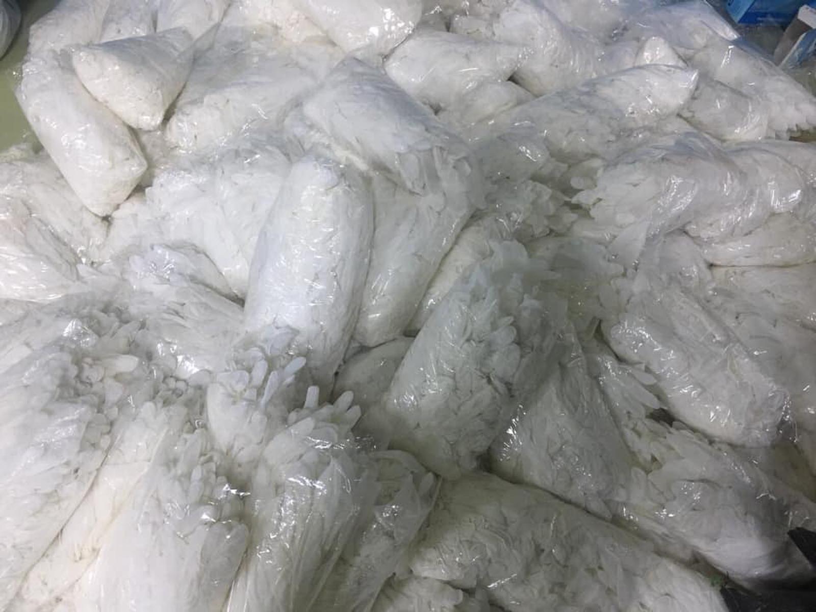 Nhà xưởng hơn 2.000m2 tại Khu công nghiệp Lương Sơn đang chứa hàng nghìn chiếc găng tay đã qua sử dụng. Ảnh: MK