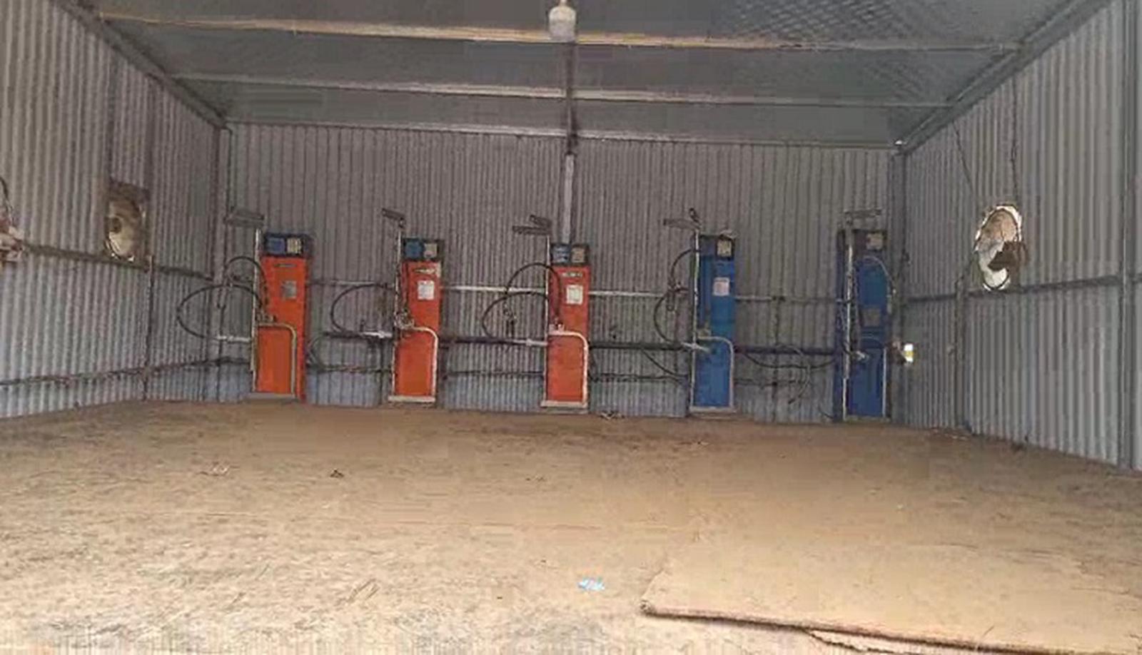 Bên trong nhà tôn (thiết kế như một sàn chiết nạp gas) có 5 cây triết nạp gas với đầy đủ van, vòi, cân điện tử được kết nối với hệ thống ống dẫn, bơm tăng áp được lắp đặt bên ngoài sân.