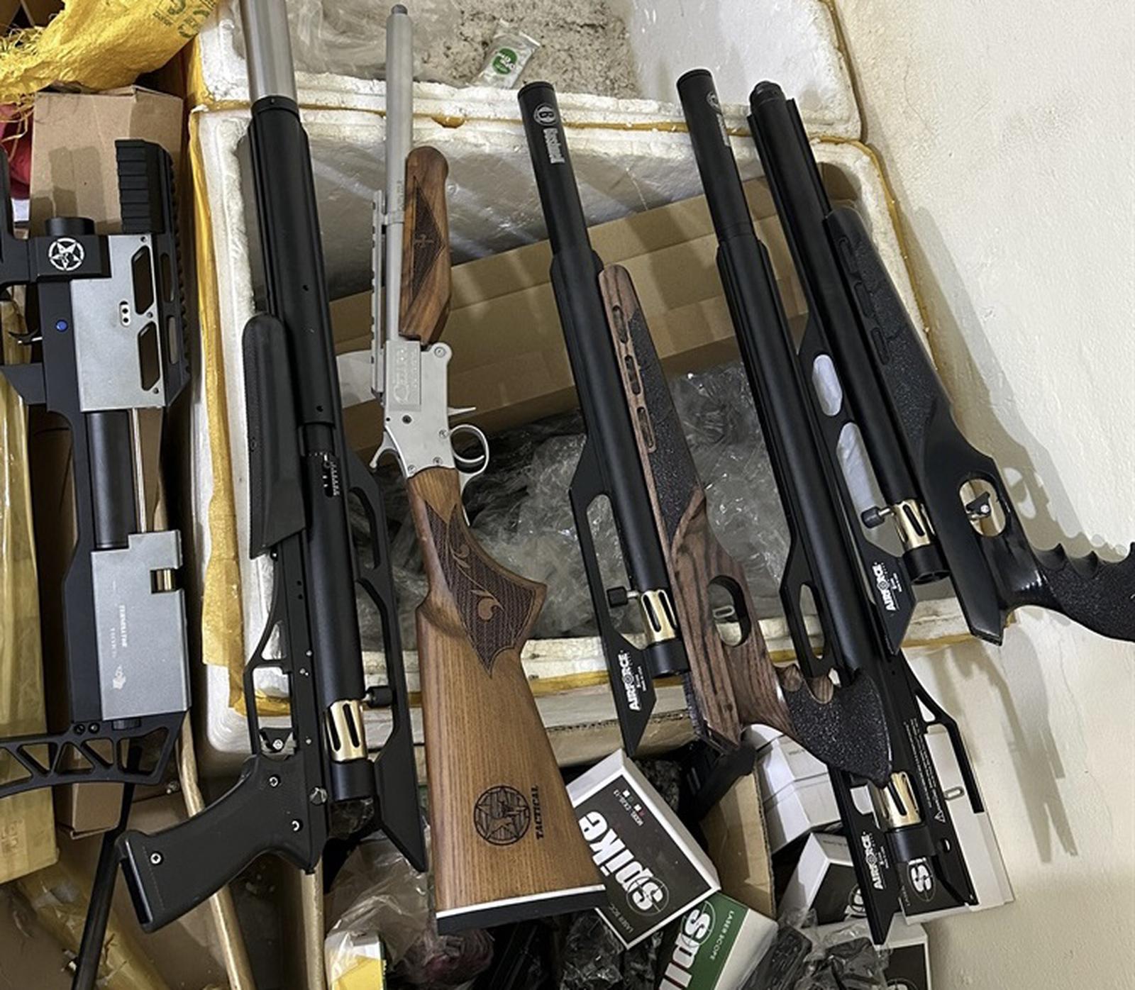 Lực lượng công an đã thu giữ 12 khẩu súng các loại, 785 viên đạn bằng kim loại; 8 bình xịt hơi cay và nhiều loại linh kiện, phụ kiện, dụng cụ để chế tạo súng săn, vũ khí thô sơ, vũ khí thể thao.