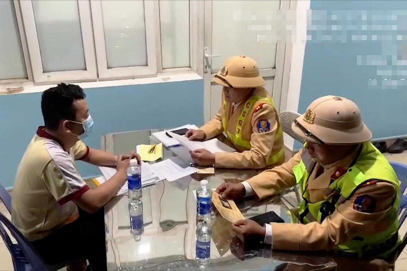 CSGT làm việc với tài xế xe khách vi phạm. Ảnh: GT