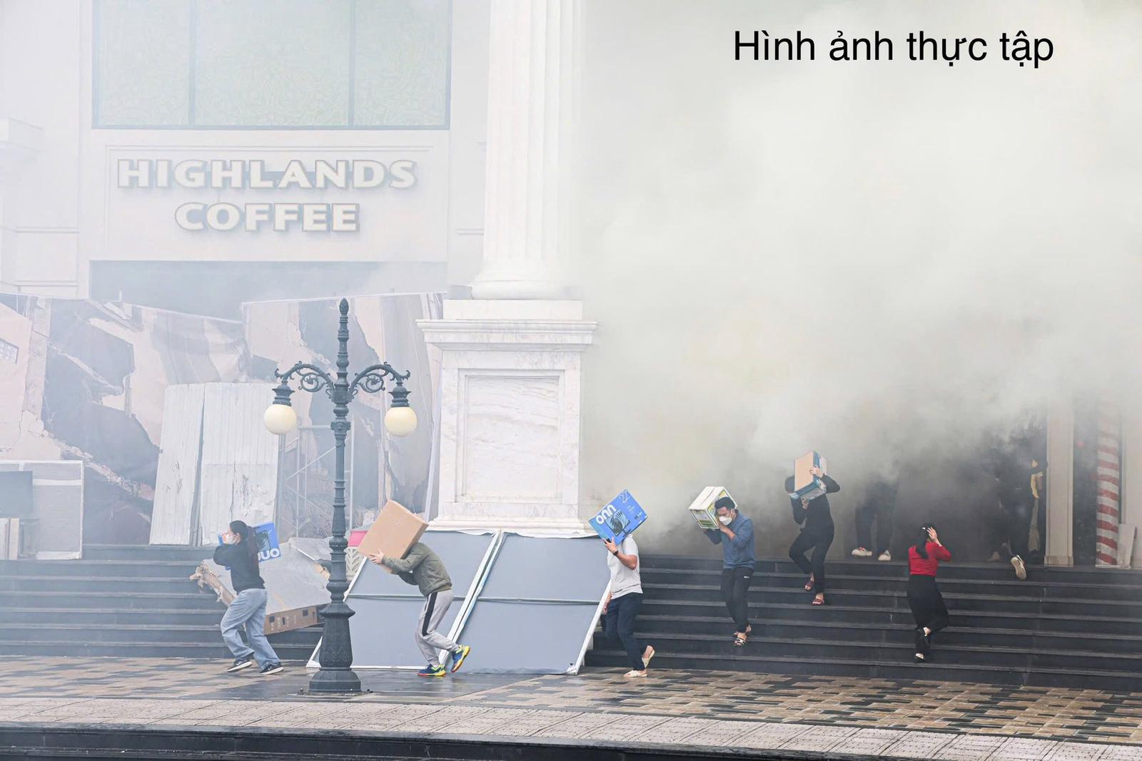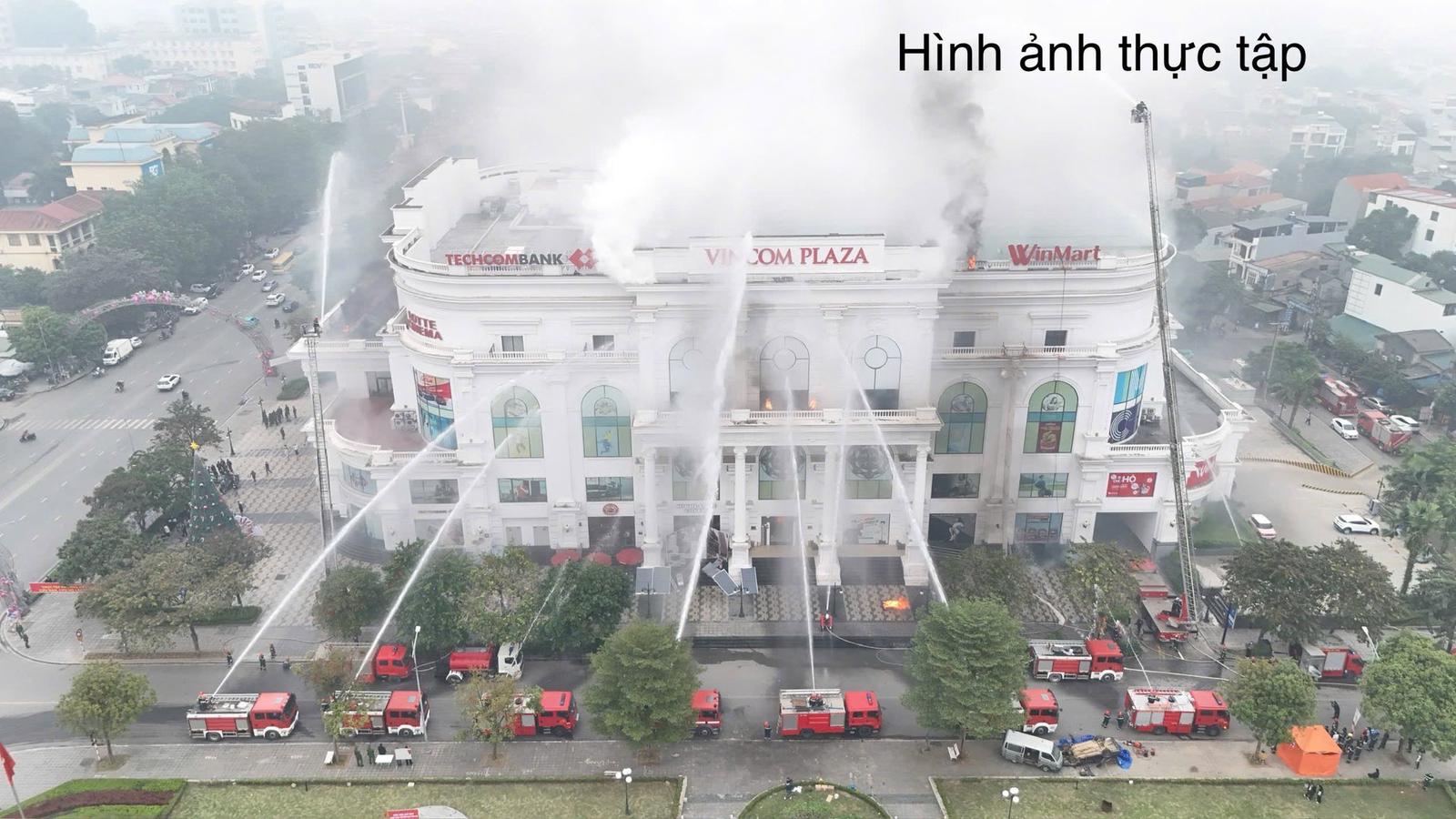 Tình huống thực tập giả định, xuất phát từ việc xảy ra cháy tại tầng 4 Trung tâm Thương mại Vincom Plaza Việt Trì, do nổ bình gas mini của một nhà hàng trong giờ cao điểm. Đám cháy lan nhanh, khói khí độc bao trùm toàn bộ khu vực, đặc biệt tại rạp chiếu phim tầng 5 có hàng trăm người mắc kẹt.