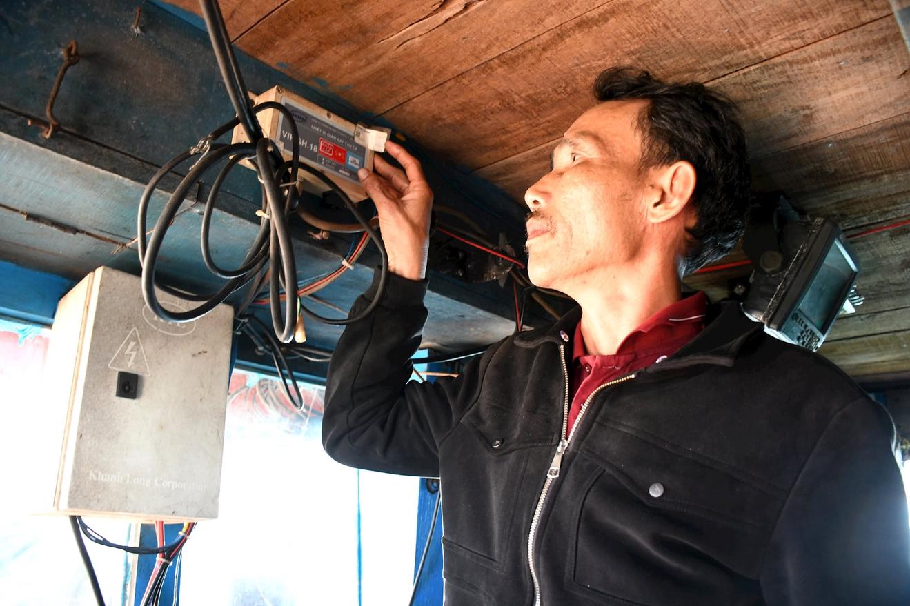 Ngư dân kiểm tra giám sát hành trình tàu cá trước khi xuất cảng bám biển dài ngày. Ảnh: Internet