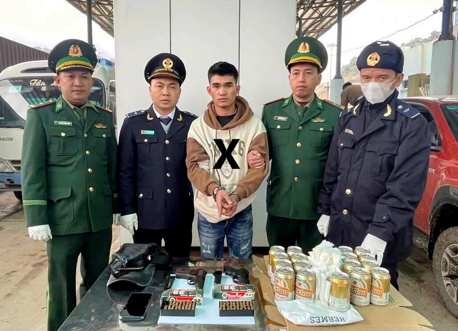 Trước đó, vào lúc 11 giờ ngày 10/1, tại luồng nhập cảnh nhà kiểm soát liên hợp Cửa khẩu quốc tế La Lay, lực lượng kiểm tra, giám sát đồn Biên phòng Cửa khẩu quốc tế La Lay phối hợp với Hải quan Cửa khẩu La Lay phát hiện, bắt quả tang đối tượng Cao Bá Huy về hành vi vận chuyển trái phép vũ khí quân dụng.