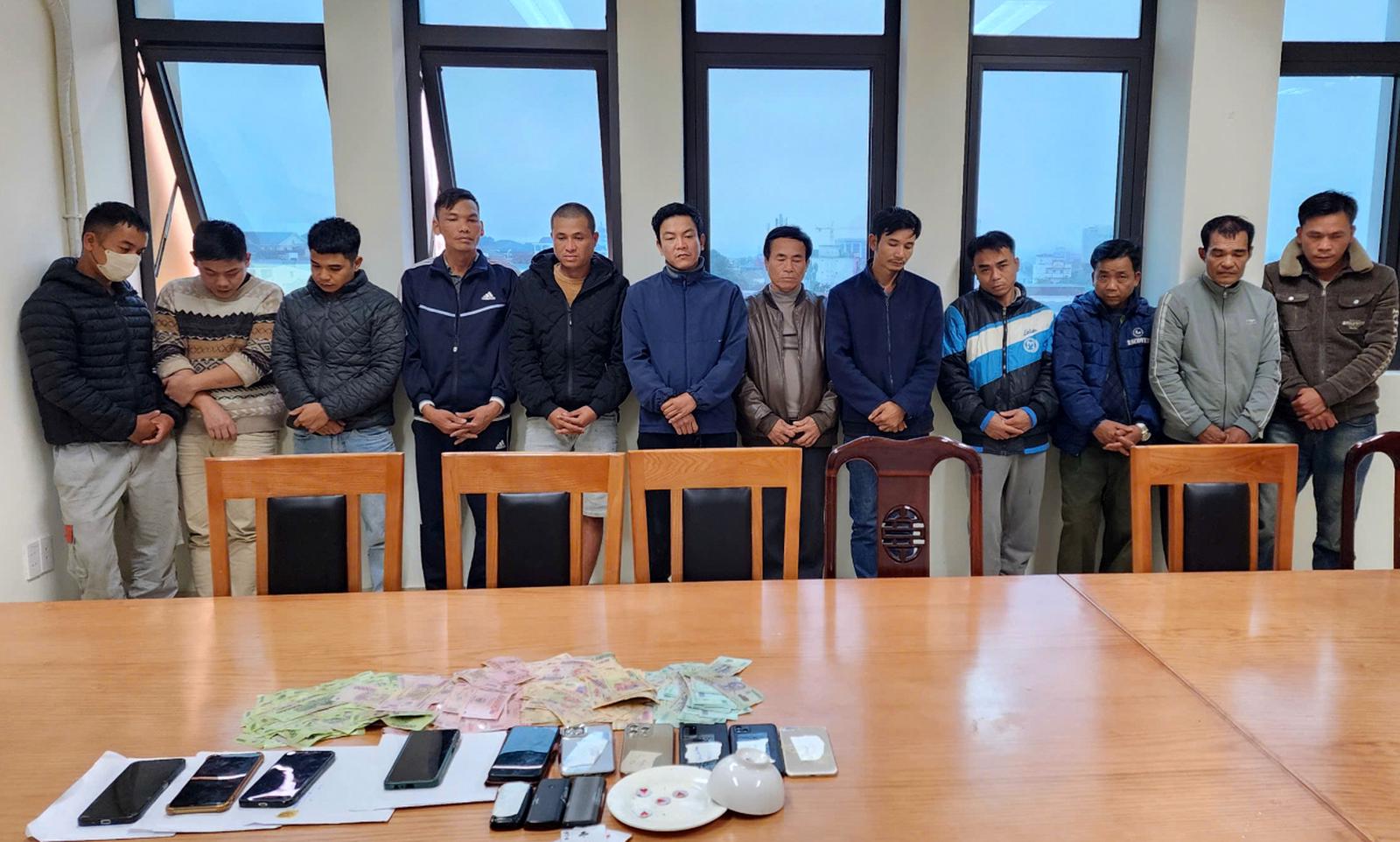 12 đối tượng bị bắt về hành vi "đánh bạc" và "tổ chức "đánh bạc". Ảnh: CA Quảng Trị