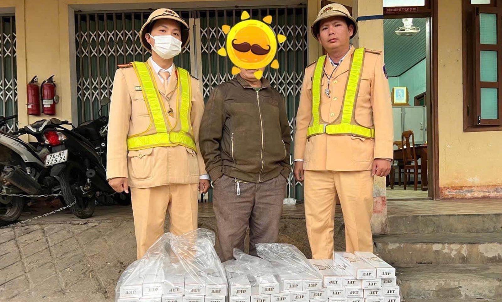 Trạm CSGT Đakrông thuộc Phòng CSGT Công an tỉnh Quảng Trị phát hiện đối tượng Dương Lực (SN 1967, trú tại huyện Hướng Hóa, tỉnh Quảng Trị) vận chuyển 990 gói thuốc lá nhậu lậu. Ảnh: CA Quảng Trị