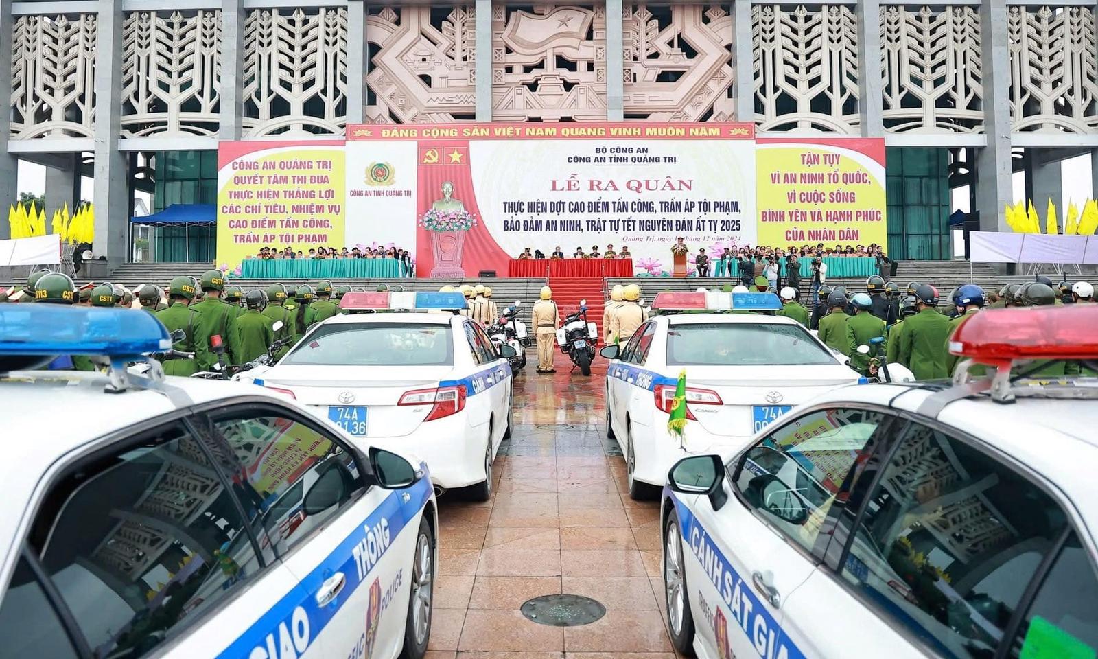 Công an tỉnh Quảng Trị ra quân thực hiện đợt cao điểm tấn công, trấn áp tội phạm, bảo đảm an ninh, trật tự Tết Nguyên đán Ất Tỵ 2025. Ảnh: CA Quảng Trị