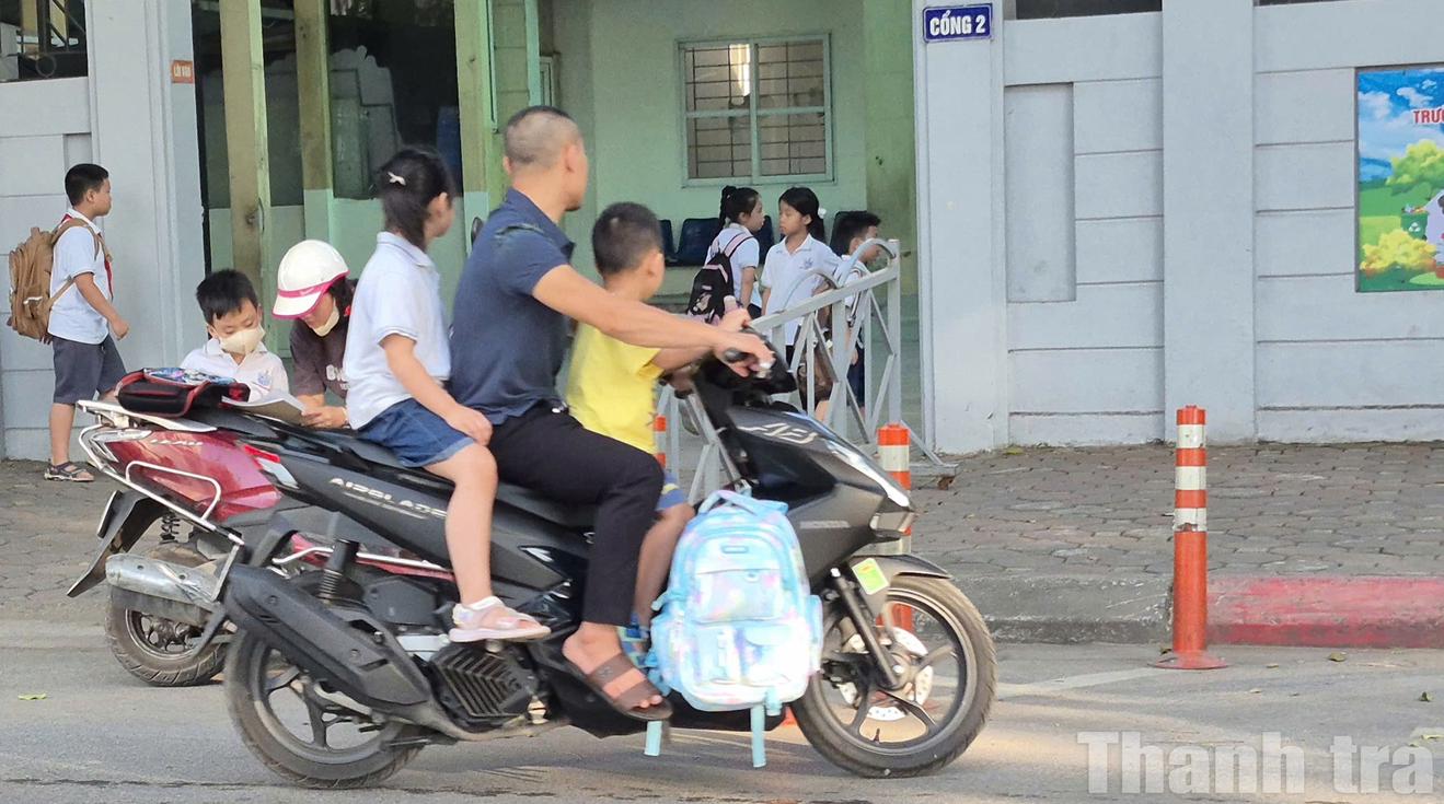 Phụ huynh vi phạm quy định về an toàn giao thông tại khu vực trường học, tạo hình ảnh xấu trước học sinh. Ảnh: TM