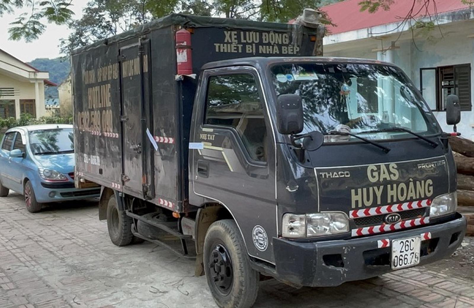 Xe chở bình gas không rõ nguồn gôc xuất xứ gắn lô gô Huy Hoàng đang bị Công an huyện Mai Sơn tạm giữ để mở rộng điều tra. Ảnh: TN