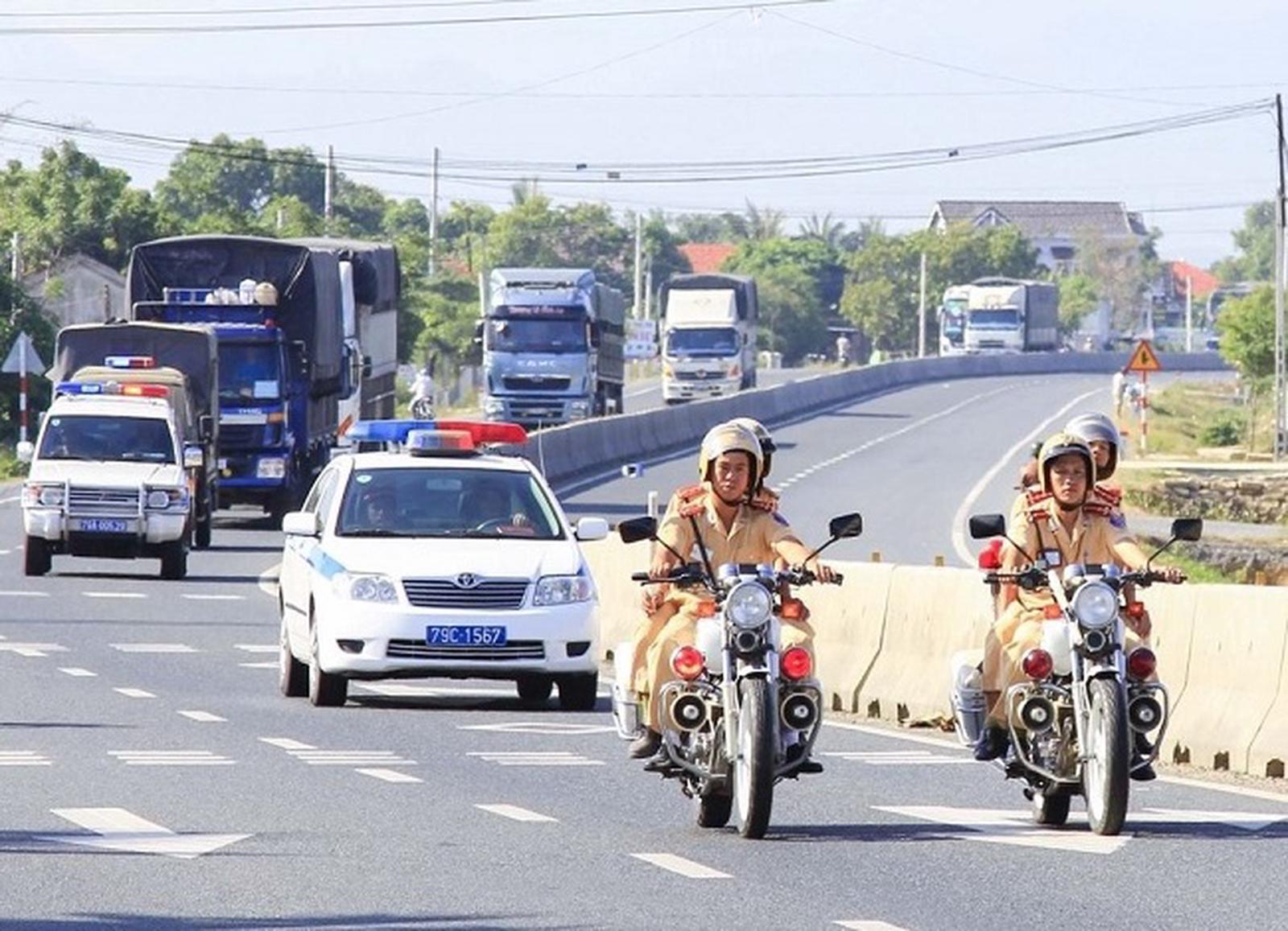 Lực lượng CSGT tỉnh Khánh Hòa ra quân đợt cao điểm bảo đảm TTATGT dịp lễ 30/4 và 1/5. Ảnh: TQ
