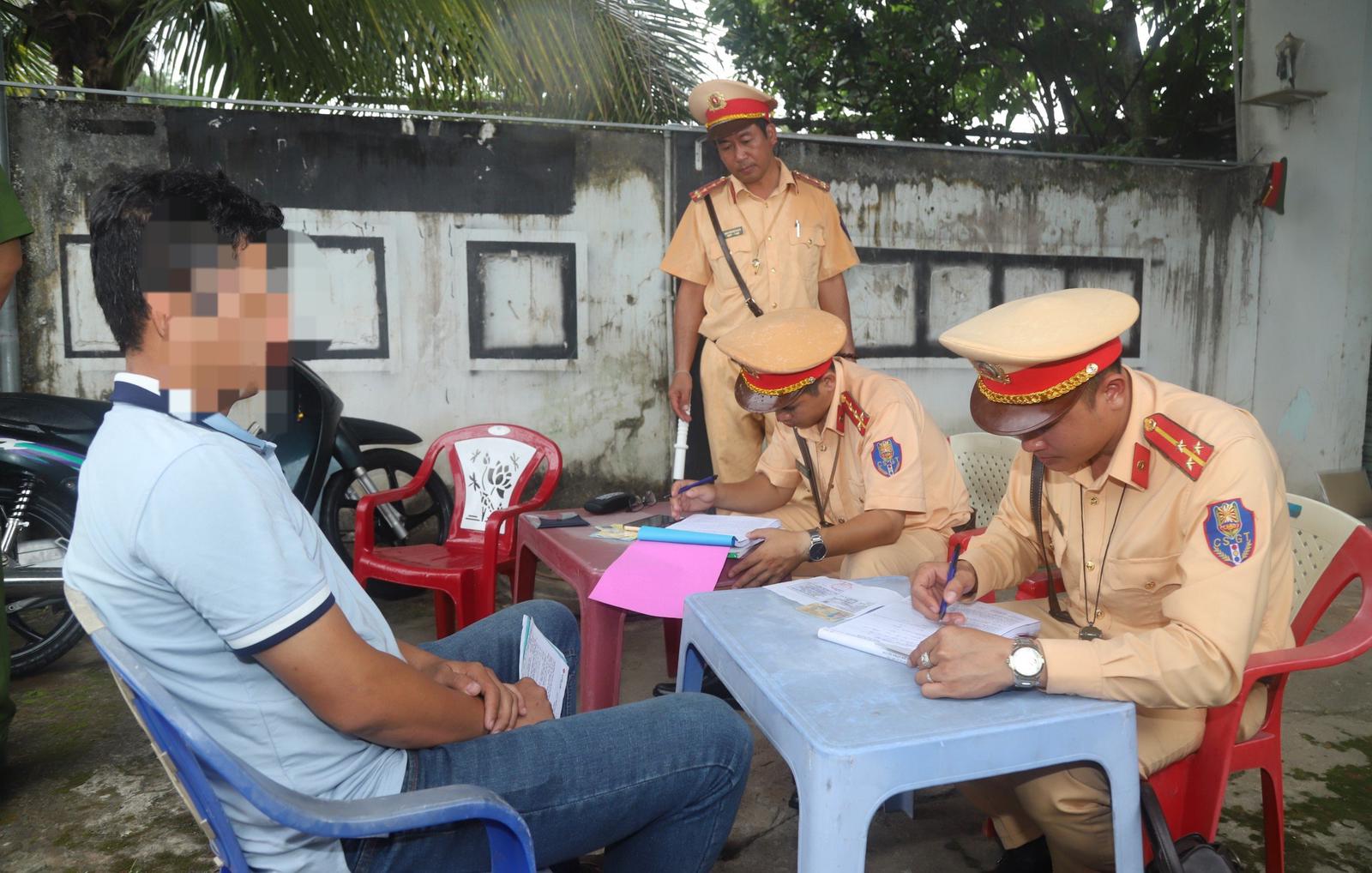Lực lượng chức năng lập biên bản người điều khiển phương tiện vi phạm khi tham gia giao thông. Ảnh: KP