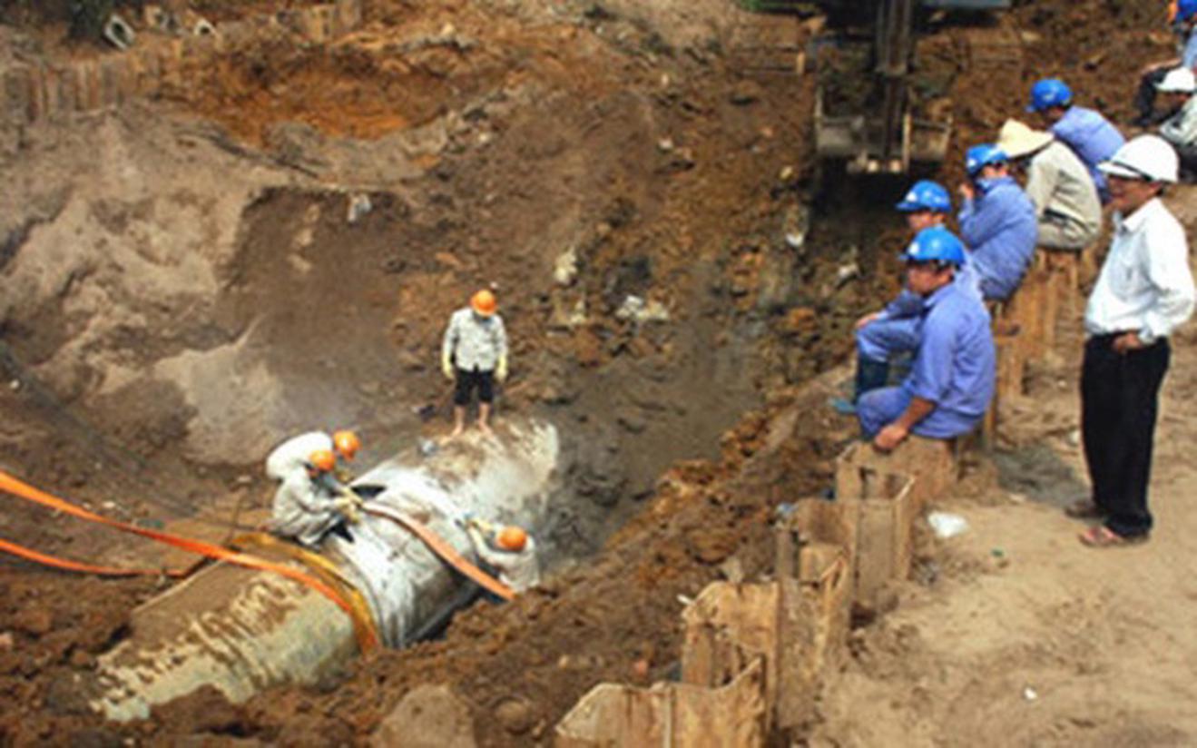 Xử lý sự cố trong một lần vỡ đường ống nước sông Đà. Ảnh: VOV