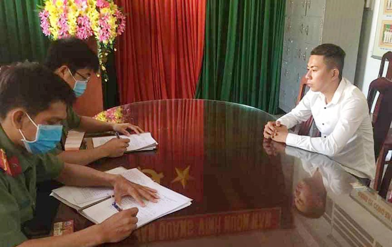 Công an huyện Kế Sách làm việc với người vi phạm. Ảnh: XC