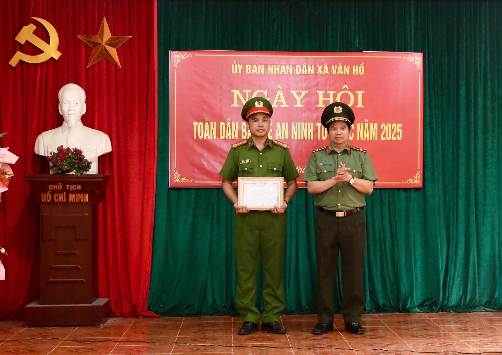 Giám đốc Công an tỉnh Sơn La đã trao giấy khen cho 1 cá nhân, UBND xã Vân Hồ trao giấy khen cho 1 tập thể và 6 cá nhân có thành tích xuất sắc trong phong trào toàn dân bảo vệ an ninh Tổ quốc.