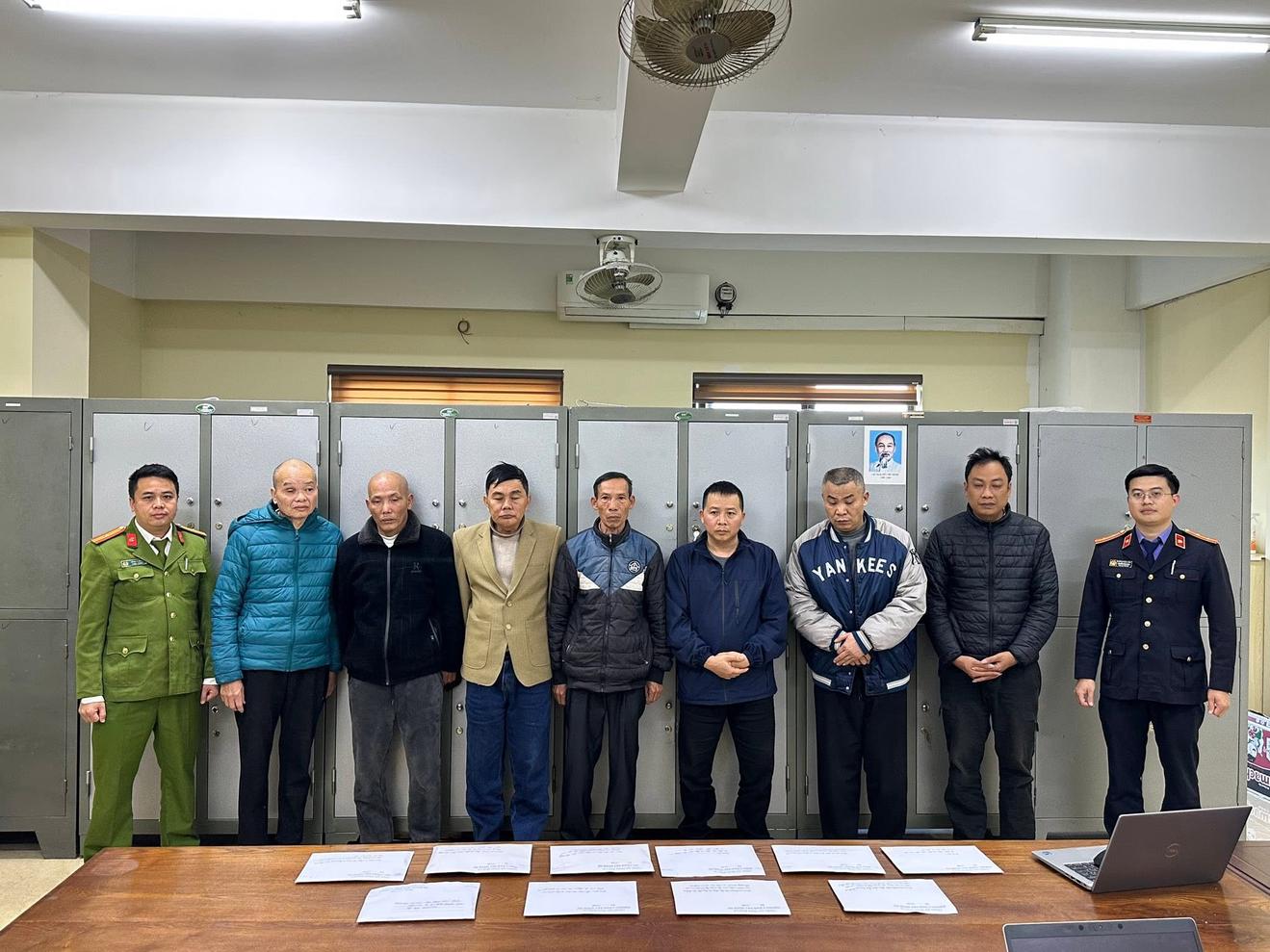 Theo đó, cơ quan công an đã phát hiện, bắt giữ 7 đối tượng cùng trú tại xã Mai Sơn, tỉnh Sơn La, gồm: Vũ Thành Nguyên (SN1982) là đối tượng cầm đầu đường dây đánh bạc, cùng các đối tượng; Đào Văn Sỹ (SN1967); Nguyễn Văn Khoa (SN1983); Giang Trung (SN1971); Nguyễn Thế Châu (SN1966); Nguyễn Ngọc Hứa (SN1965) và Vũ Công Hòa (SN1963).
