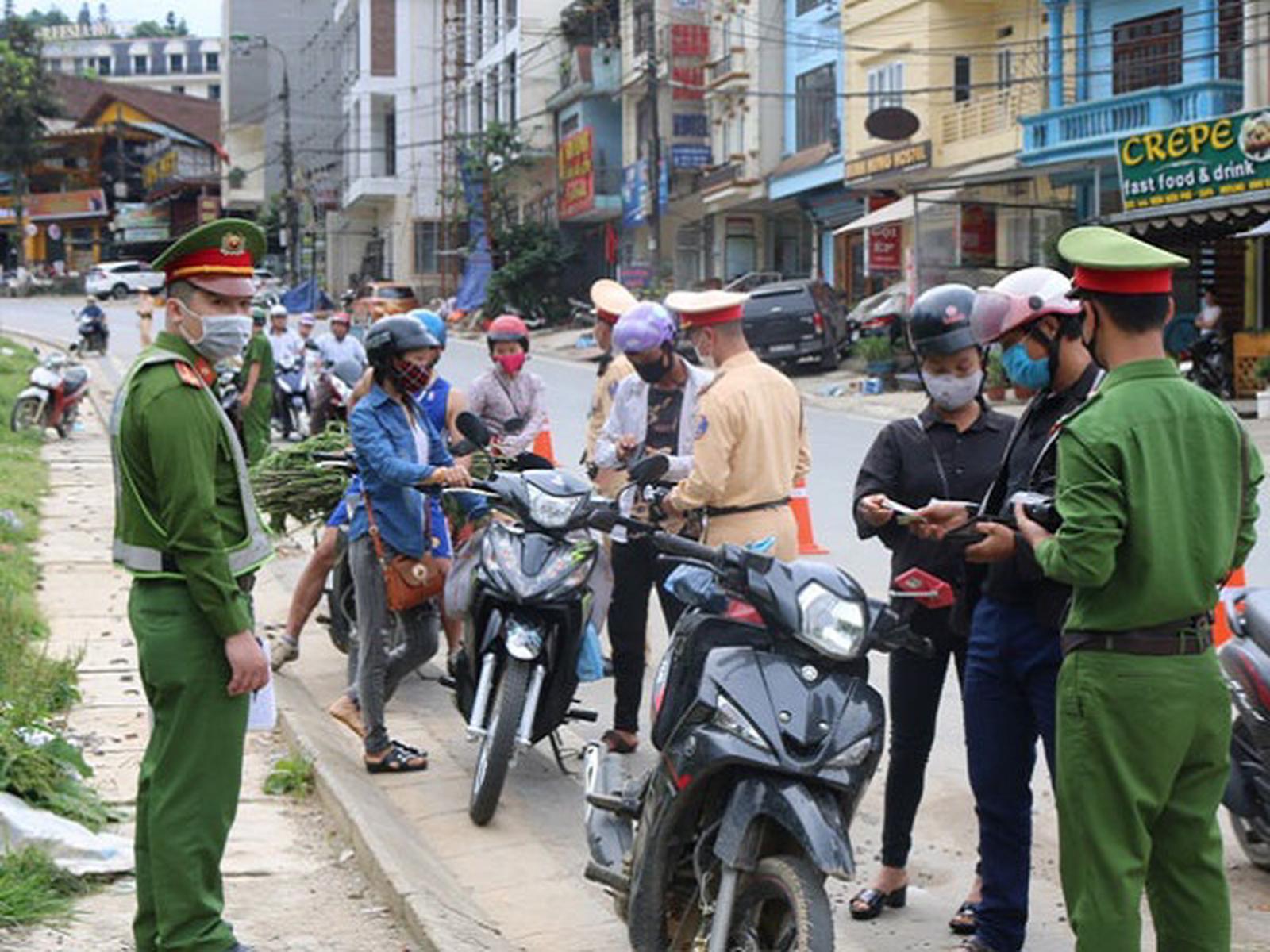 Lực lượng Cảnh sát giao thông thị xã Sa Pa kiểm tra phương tiện giao thông. Ảnh: TQ