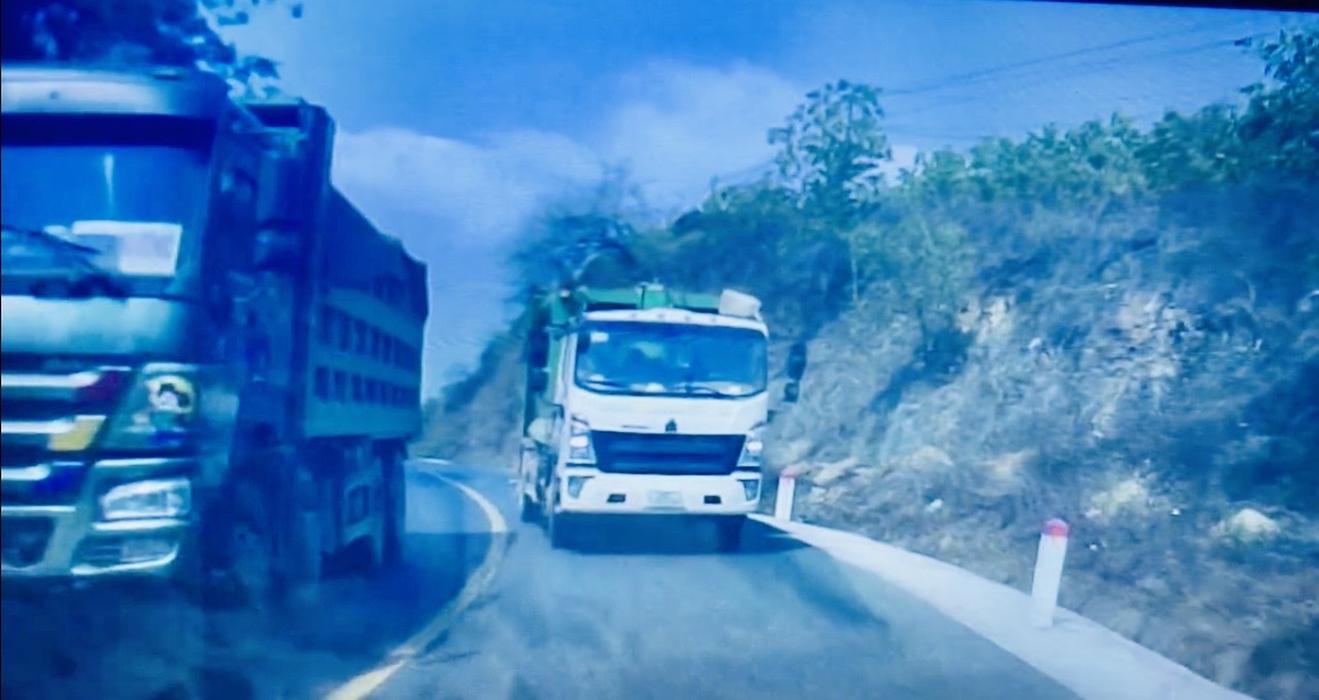 Vị trí tài xế xe ô tô chở rác vượt xe trên đường hai chiều khu vực đỉnh dốc, đoạn đường cong nguy hiểm trên km 18, Quốc lộ 217, tỉnh Thanh Hoá. Ảnh: cắt từ video
