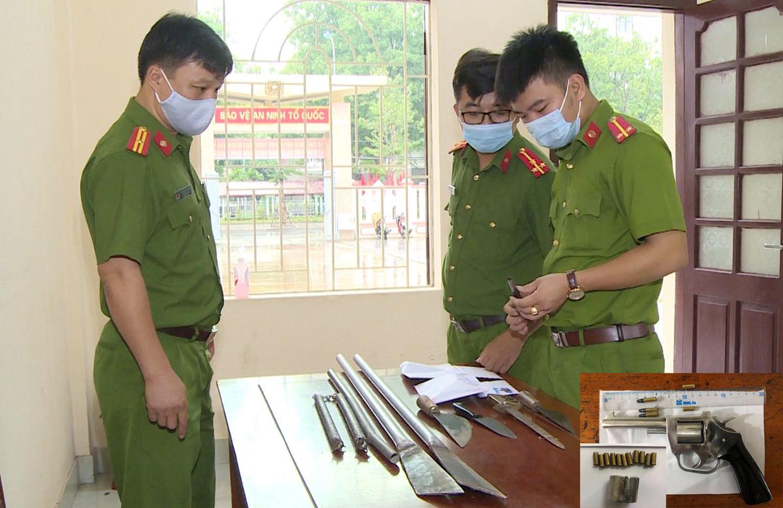 Các vũ khí nóng, trong đó có cả súng đạn các đối tượng dùng để gây rối trật tự công cộng. Ảnh: VT