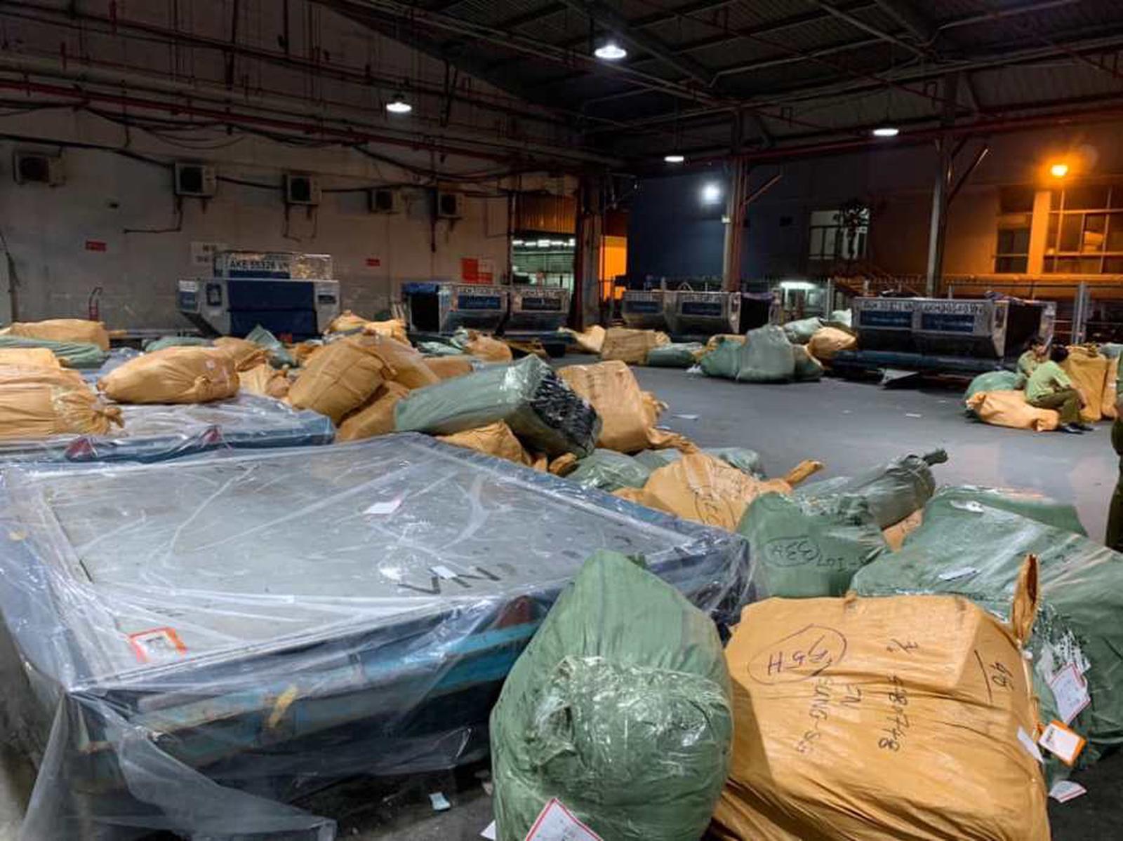 Hơn 4 tấn hàng không rõ nguồn gốc vận chuyển trên chuyến bay của Vietnam Airlines. Ảnh: Minh Khuyên