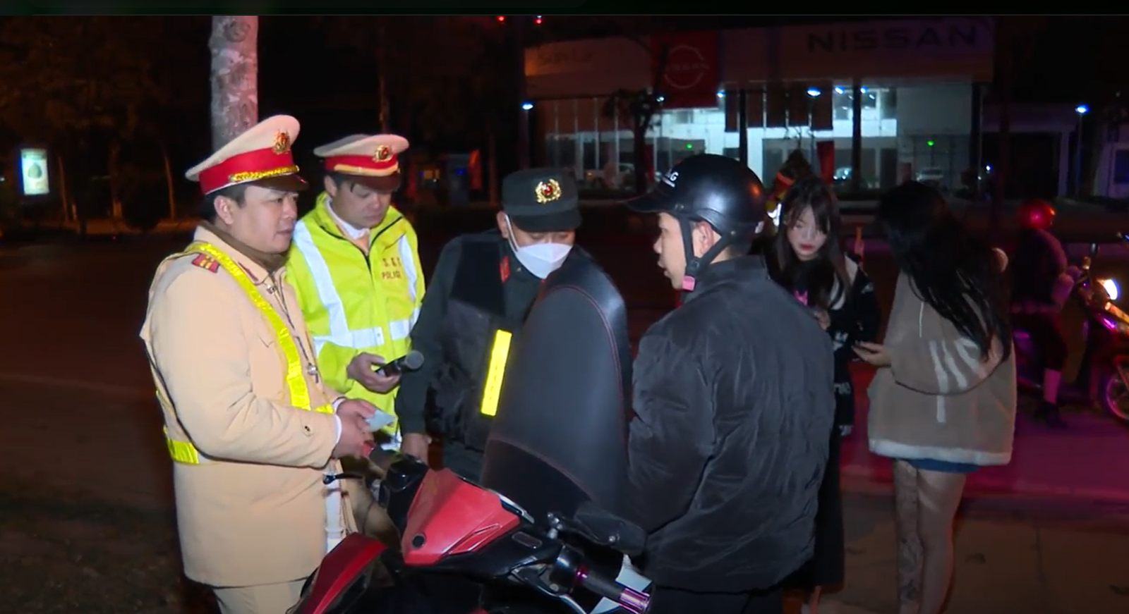 Chỉ sau gần 2 giờ đồng hồ, lực lượng chức năng đã lập biên bản xử lý 5 trường hợp vi phạm về nồng độ cồn, 2 trường hợp không có giấy phép lái xe, 2 trường hợp không đội mũ bảo hiểm.
