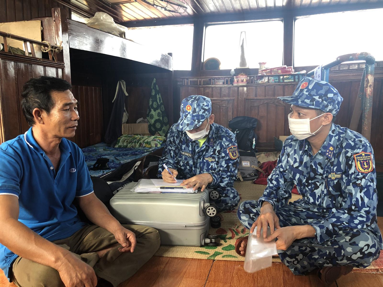 Lực lượng cảnh sát biển kiểm tra, tuyên truyền cho ngư dân, phòng chống IUU. Ảnh: AX