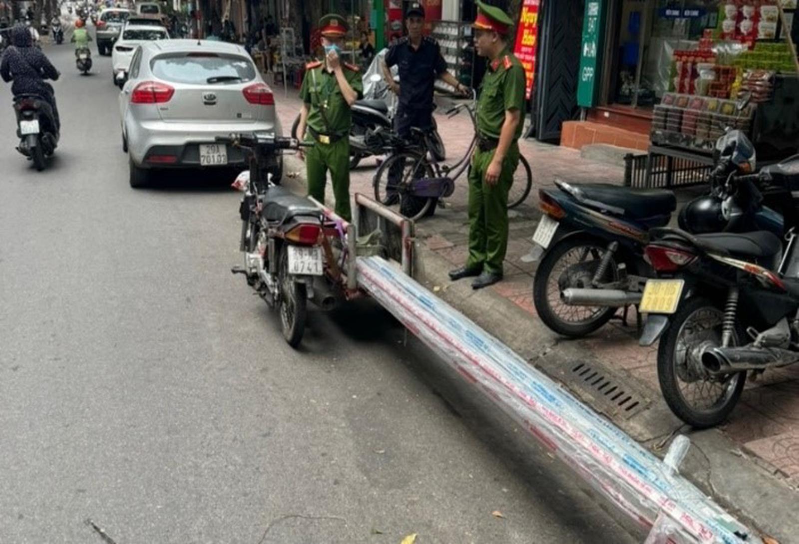 Tính riêng từ 15/3/2024 đến nay, Công an quận đã kiểm tra, xử lý trên 42 xe ba bánh, 46 xe mô tô chở hàng cồng kềnh, 56 xe kéo theo xe khác...