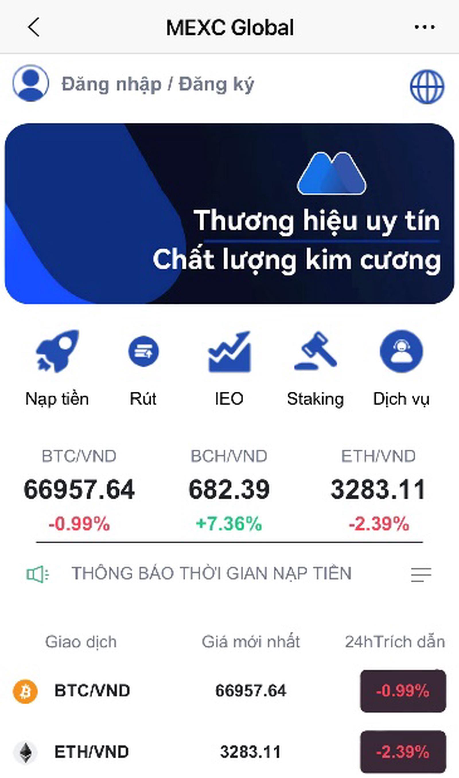 Giao diện trang web đầu tư tài chính http://mexcglobali66.com mà đối tượng sử dụng để lừa đảo, chiếm đoạt tài sản