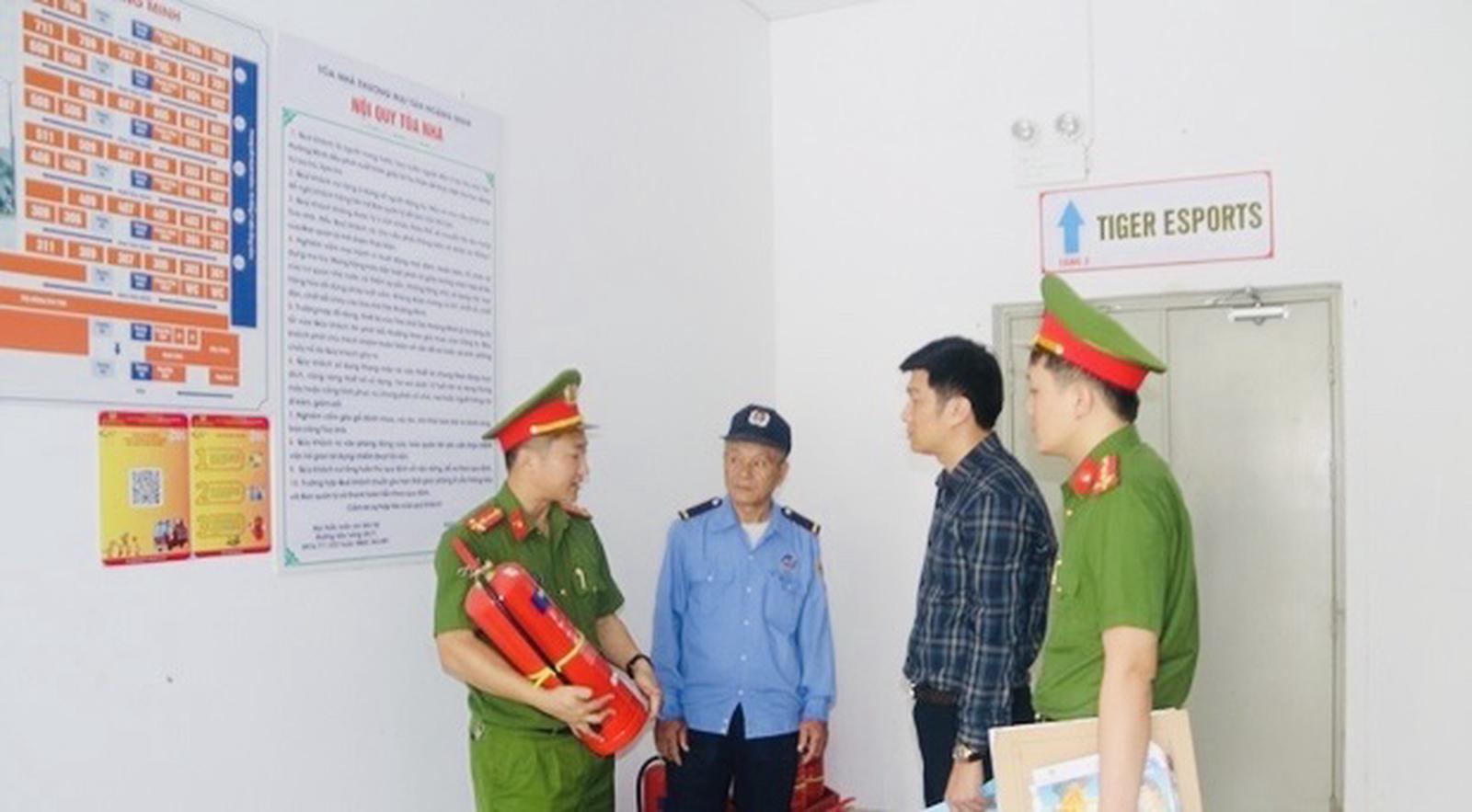 Lưc lượng công an tuyên truyền cho người dân và doanh nghiệp thực hiện nghiêm các quy định về phòng cháy, chữa cháy. Ảnh: CTV