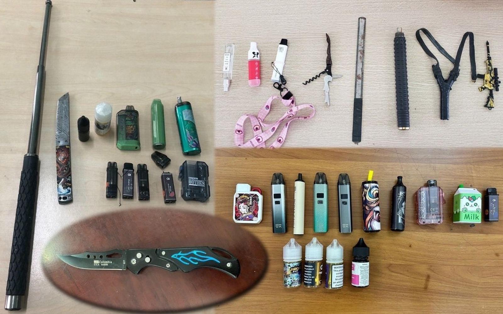 Theo kết quả kiểm tra bước đầu đối với 631 trường THPT, THCS, trung tâm GDTX - dạy nghề với tổng số 166.997 học sinh; 773 hàng quán xung quanh trường học và hơn 4.000 phương tiện của học sinh, lực lượng công an đã phát hiện, thu giữ 152 dao, kéo các loại (dao gọt hoa quả, dao tự chế, dao găm, dao bấm, dao bầu, dao thái thịt, dao đi rừng...); 27 côn nhị khúc, gậy ba khúc, tuýp sắt, gậy gỗ; 24 đồ chơi nguy hiểm (súng bắn đạn nhựa, dao nhựa, bình xịt hơi cay, dùi cui điện tự chế...); 23 kìm, cờ lê, tua vít, búa; 91 máy hút và 16 lọ tinh dầu thuốc lá điện tử; 10 gói thuốc lá; 2 học sinh tàng trữ cỏ mỹ và cần sa; 5 ná cao su bắn đạn bi; 36 viên bi sắt và nhiều đồ dùng khác không liên quan đến dụng cụ học tập (bài tứ lơ khơ, bật lửa, kìm cắt móng tay, cưa.