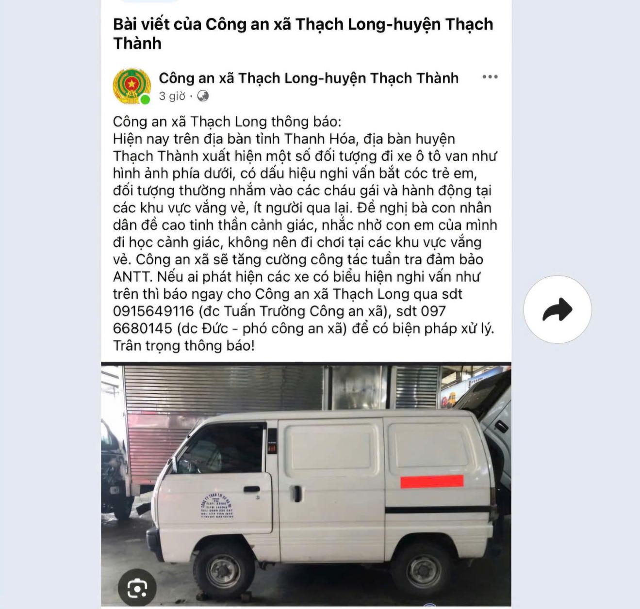 (Thanh tra) - Ngày 19/2, trên một số phương tiện thông tin đại chúng và các trang mạng xã hội xuất hiện cảnh báo liên quan đến vụ việc bắt cóc trẻ em xảy ra trên địa bàn xã Thạch Long, huyện Thạch Thành, tỉnh Thanh Hóa khiến người dân hết sức hoang mang.