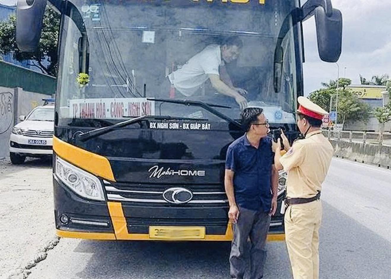 Lực lượng cảnh sát giao thông Công an tỉnh kiểm tra nồng độ cồn lái xe vận tải hành khách trên tuyến Quốc lộ 1A đoạn qua xã Lưu Vệ, tỉnh Thanh Hoá. Ảnh: Công an TH
