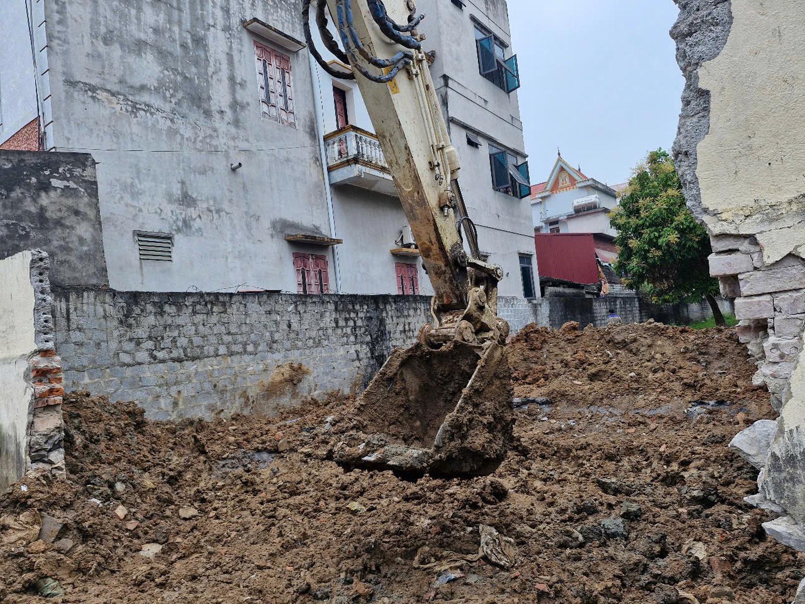 Đơn vị thi công đưa máy móc đến để tháo dỡ công trình xây dựng trạm biến áp trong khuôn viên trường học. Ảnh: Hương Trà