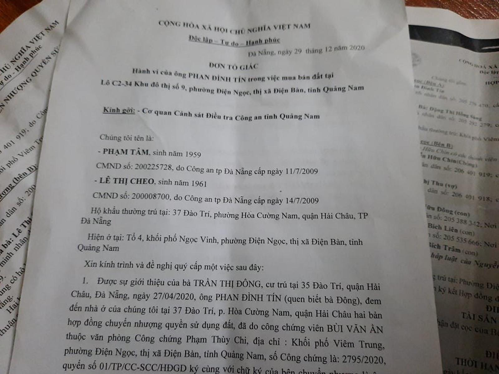 Hiện, có nhiều nạn nhân như ông Tâm bị mất tiền do Phan Đình Tín lừa đảo; tiếp tục gửi đơn đến Cơ quan Điều tra Công an tỉnh Quảng Nam để tố cáo.