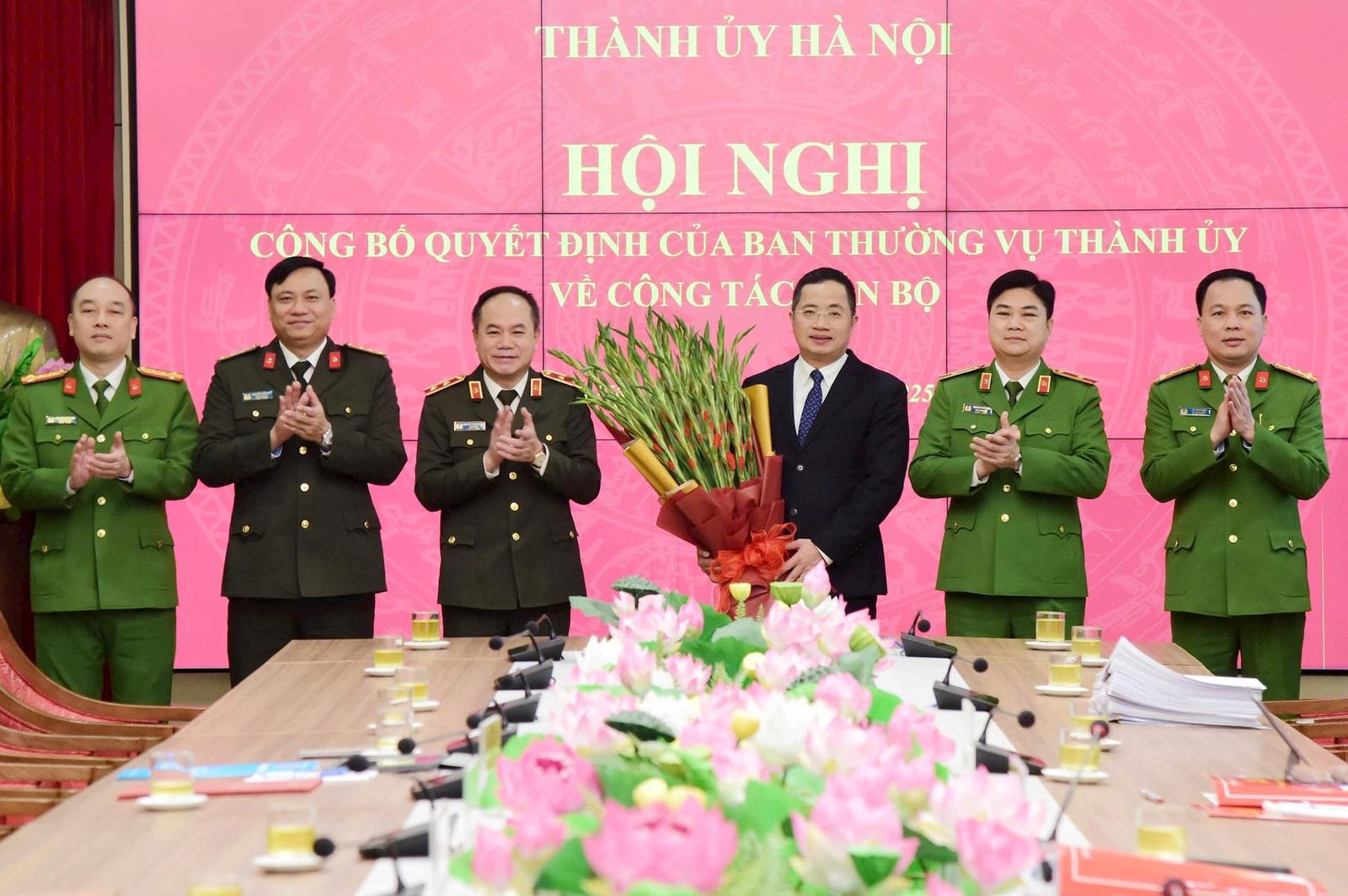 Ban Giám đốc Công an thành phố Hà Nội chúc mừng Thiếu tướng Nguyễn Thành Long nhận nhiệm vụ mới. Ảnh: Viết Thành