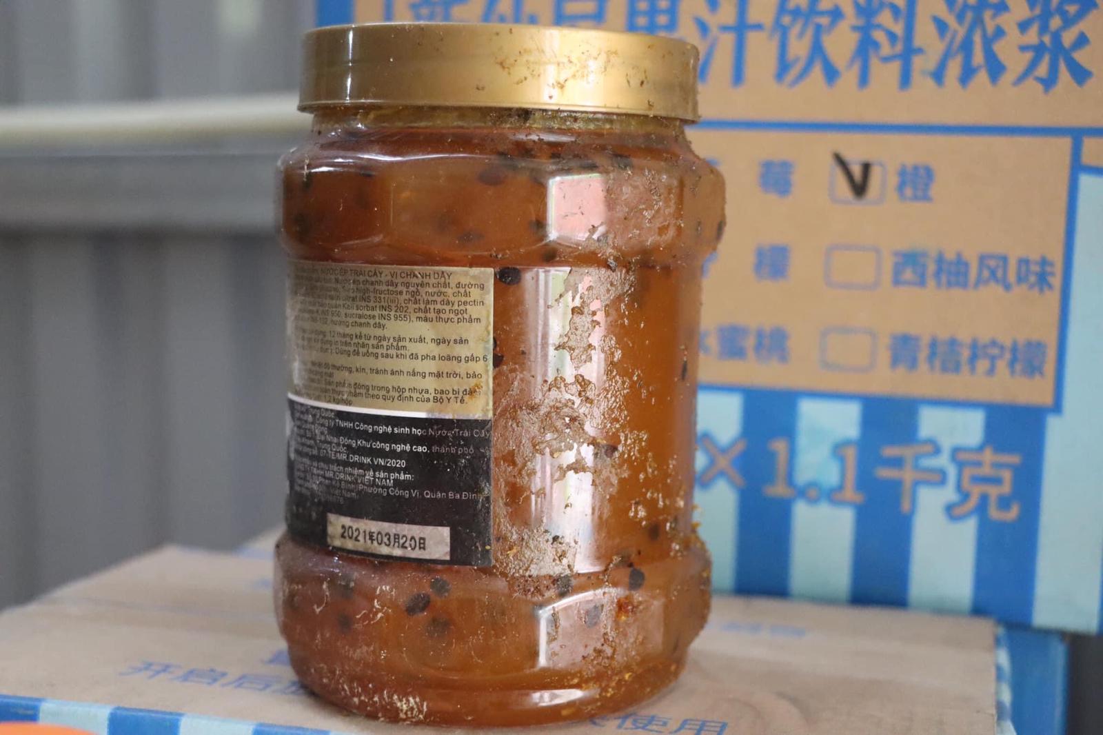 Nguyên liệu làm trà sữa chưa rõ nguồn gốc của Cty TNHH Mr. Drink Việt Nam vừa bị lực lượng QLTT thu giữ chiều 24/6. Ảnh: MK