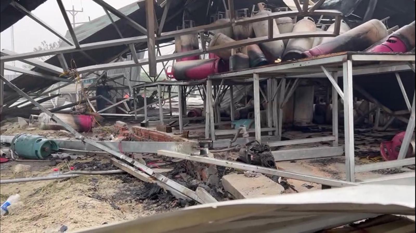 Hiện trường vụ cháy giống như một sàn chiết nạp gas trong nhà xưởng bị đổ sập do vụ cháy. Ảnh: TN